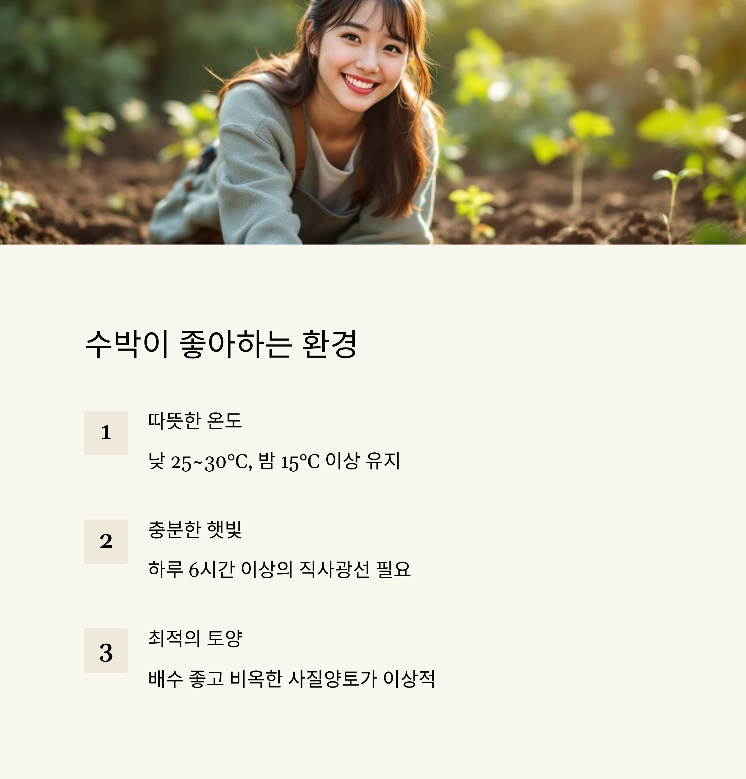 이 과정을 잘 지키면 수박이 튼실하게 자랄 거예요. 매일 아침 밭을 둘러보며 상태를 체크하는 습관을 들여보세요!