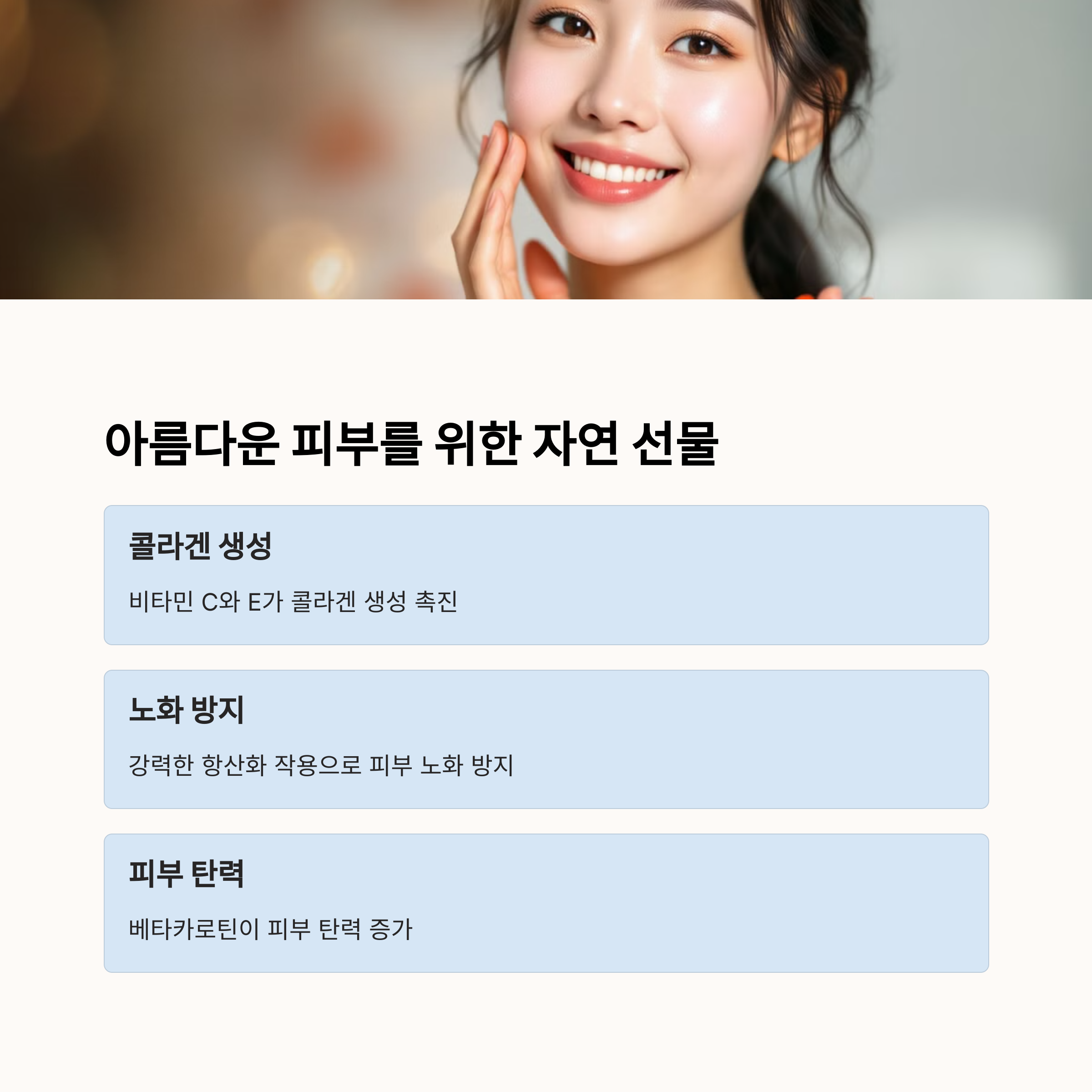 구기자는 베타카로틴, 라이코펜(lycopene), 폴리페놀이 풍부해 활성산소를 제거하고 세포 노화를 늦춰요. 2023년 한국식품영양과학회 연구에서 구기자 추출물이 피부 주름을 25% 줄이고 탄력을 높이는 데 효과적이었다고 해요.