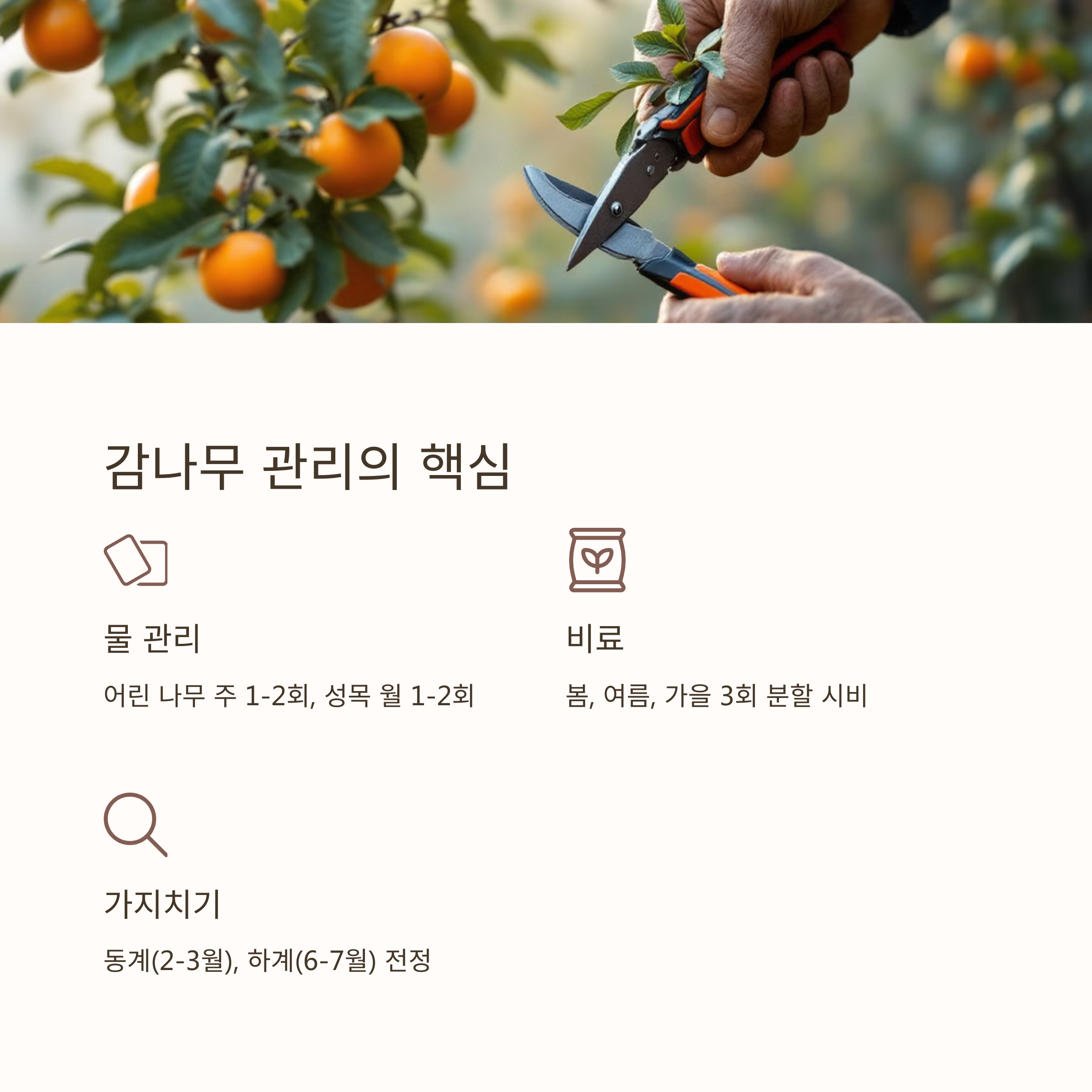 도표도 추가해 한눈에 쏙 들어오게 정리했으니, 감나무 재배의 첫걸음을 함께 내디뎌볼까요? 정성 들여 키운 감을 수확하는 그 날을 꿈꾸며, 지금부터 시작합니다!