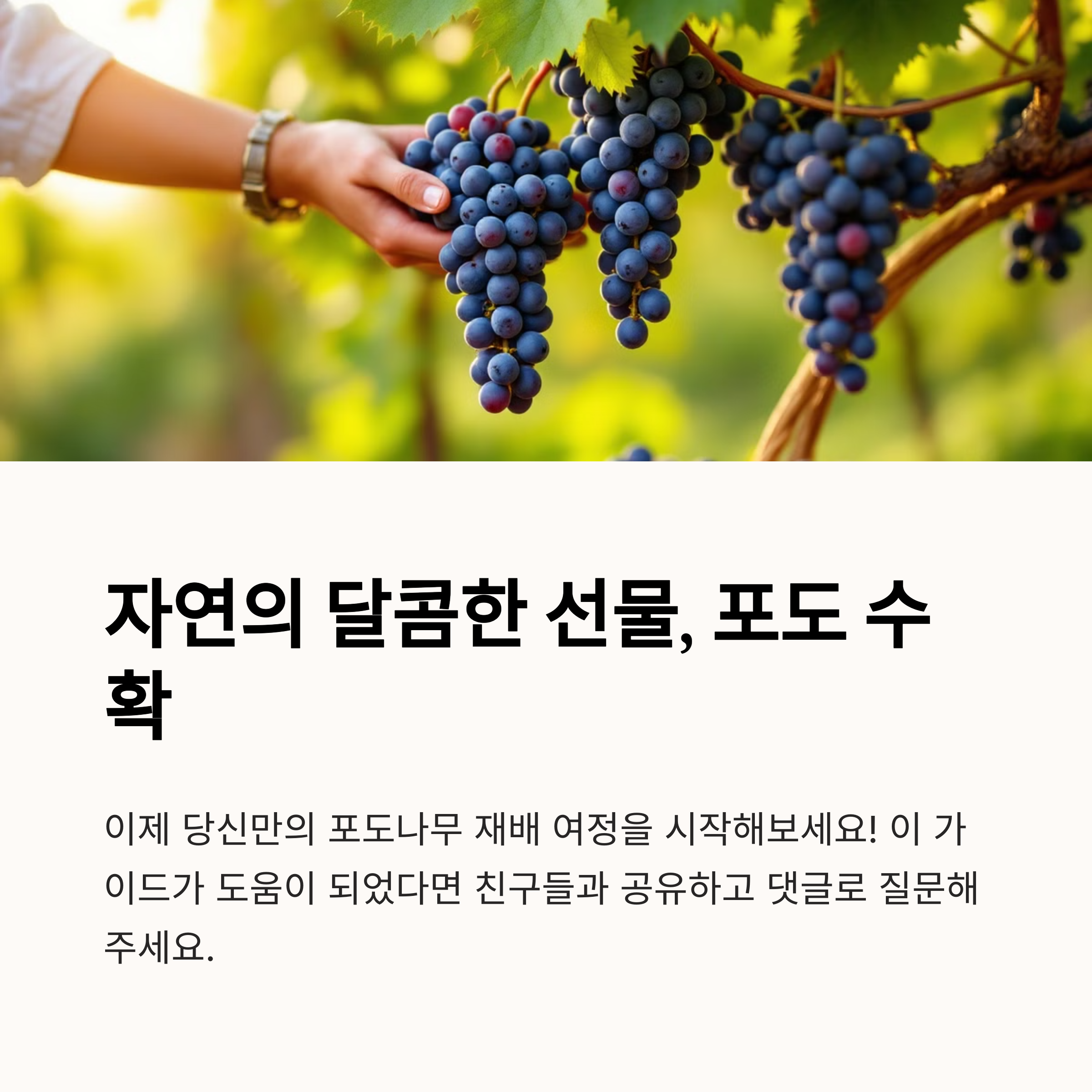 포도나무 재배는 처음엔 손이 좀 가지만, 열매를 따는 순간의 기쁨은 정말 대단해요. 저도 처음엔 실패했지만, 이렇게 하나씩 배워가며 성공했답니다.