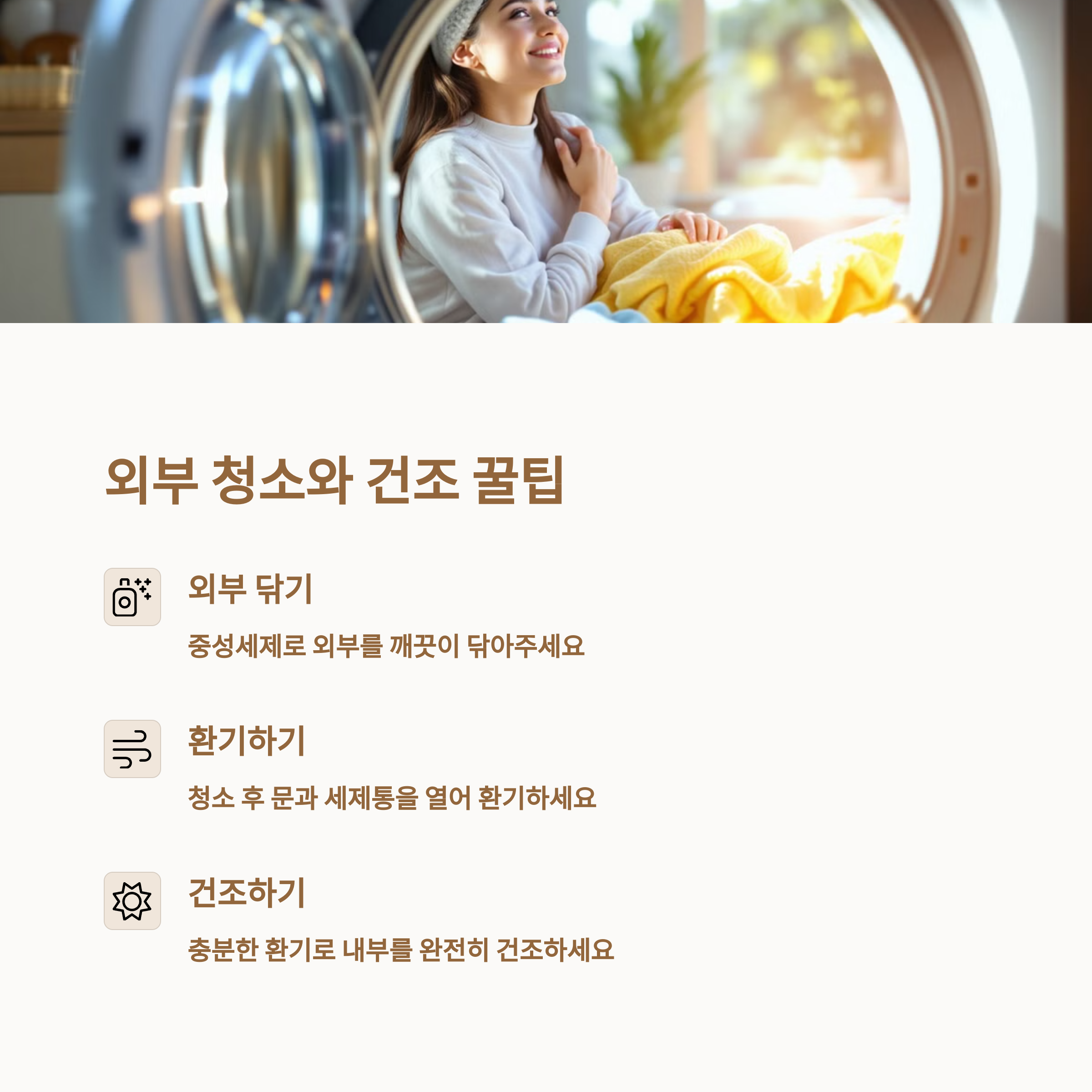 -세제 적정량 사용(과다 시 찌꺼기 쌓임).