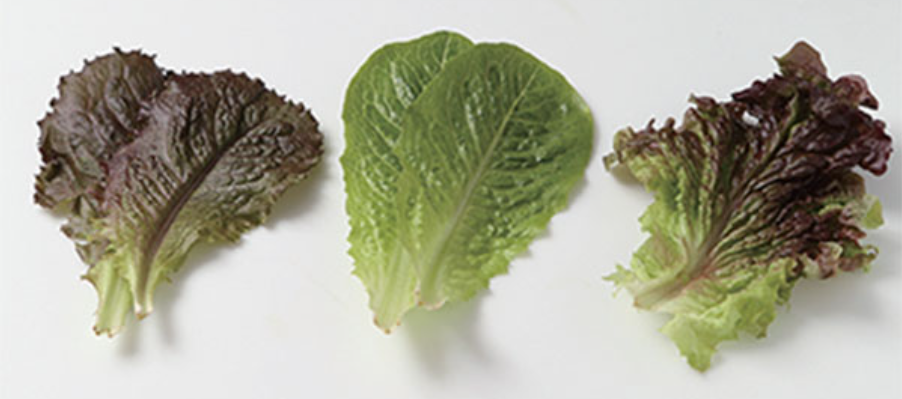 <적로메인(왼쪽), 청로메인(가운데), 일반 상추(오른쪽)>
