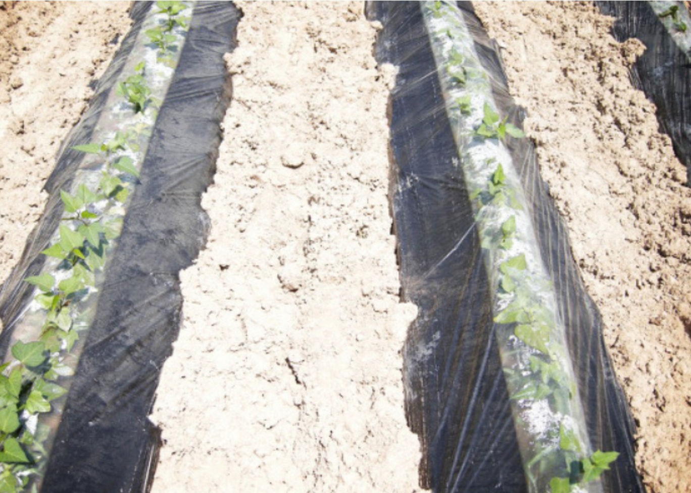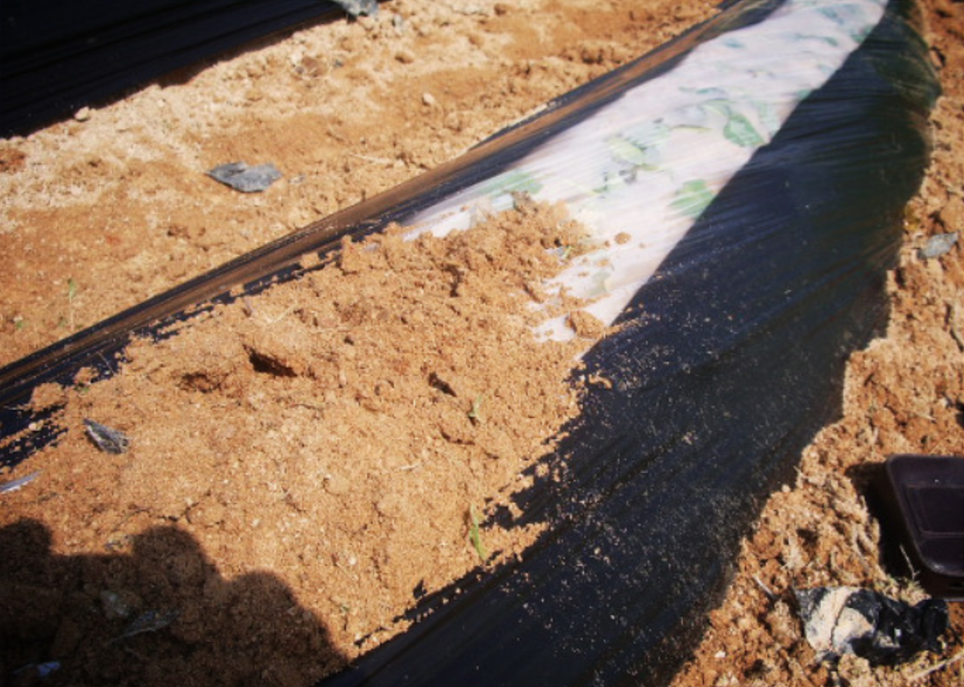 4. 검정+흰색 비닐로 멀칭 후 비닐 위에 흙을 살짝 올림(뿌리 활착 전 온도 조절용).
