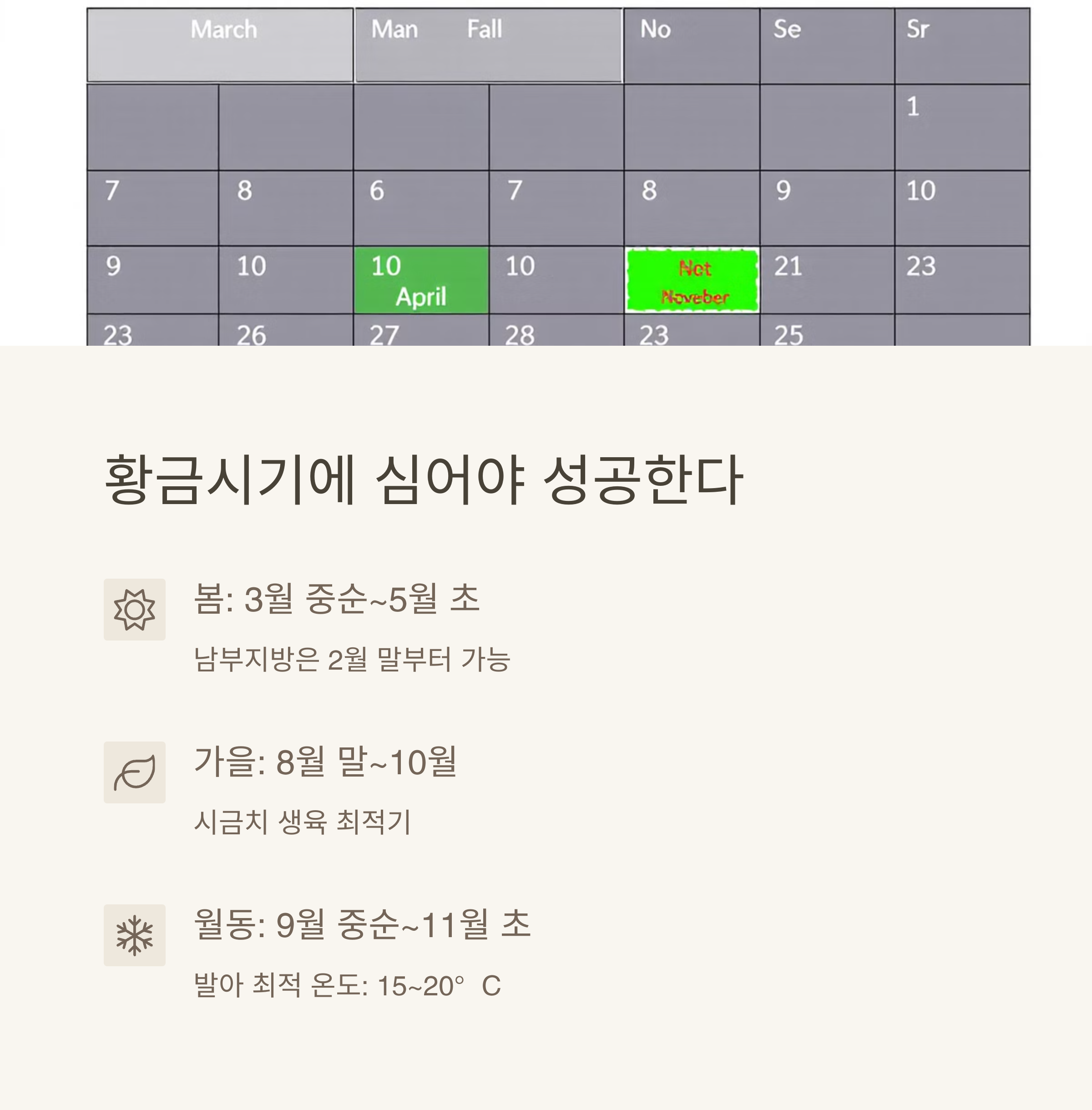 계절별 재배 포인트: 한눈에 확인