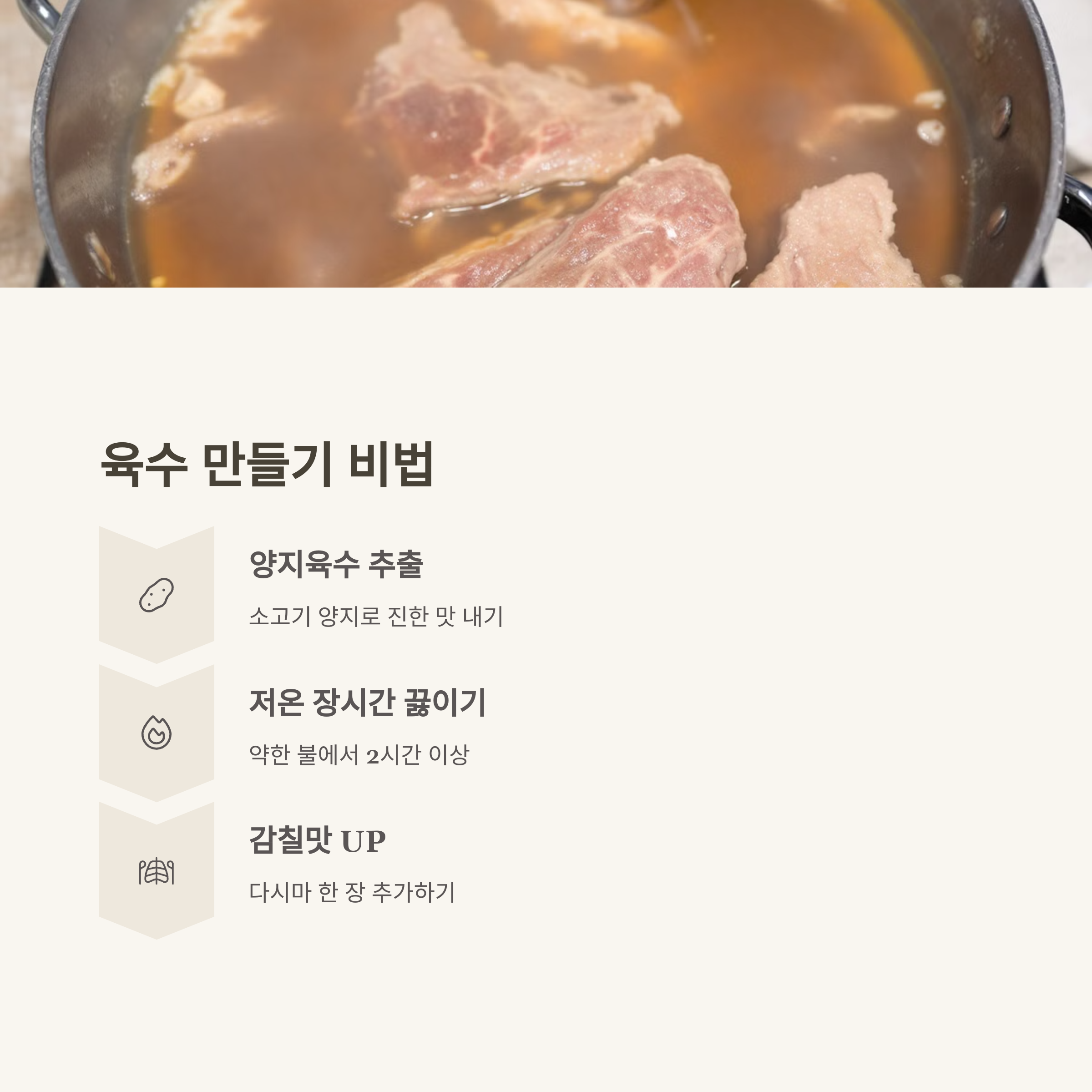 💡 차별화 팁: 육수에 멸치 5마리를 10분간 넣었다 빼면 감칠맛이 더 살아요. 저는 작년에 이걸 발견했어요!