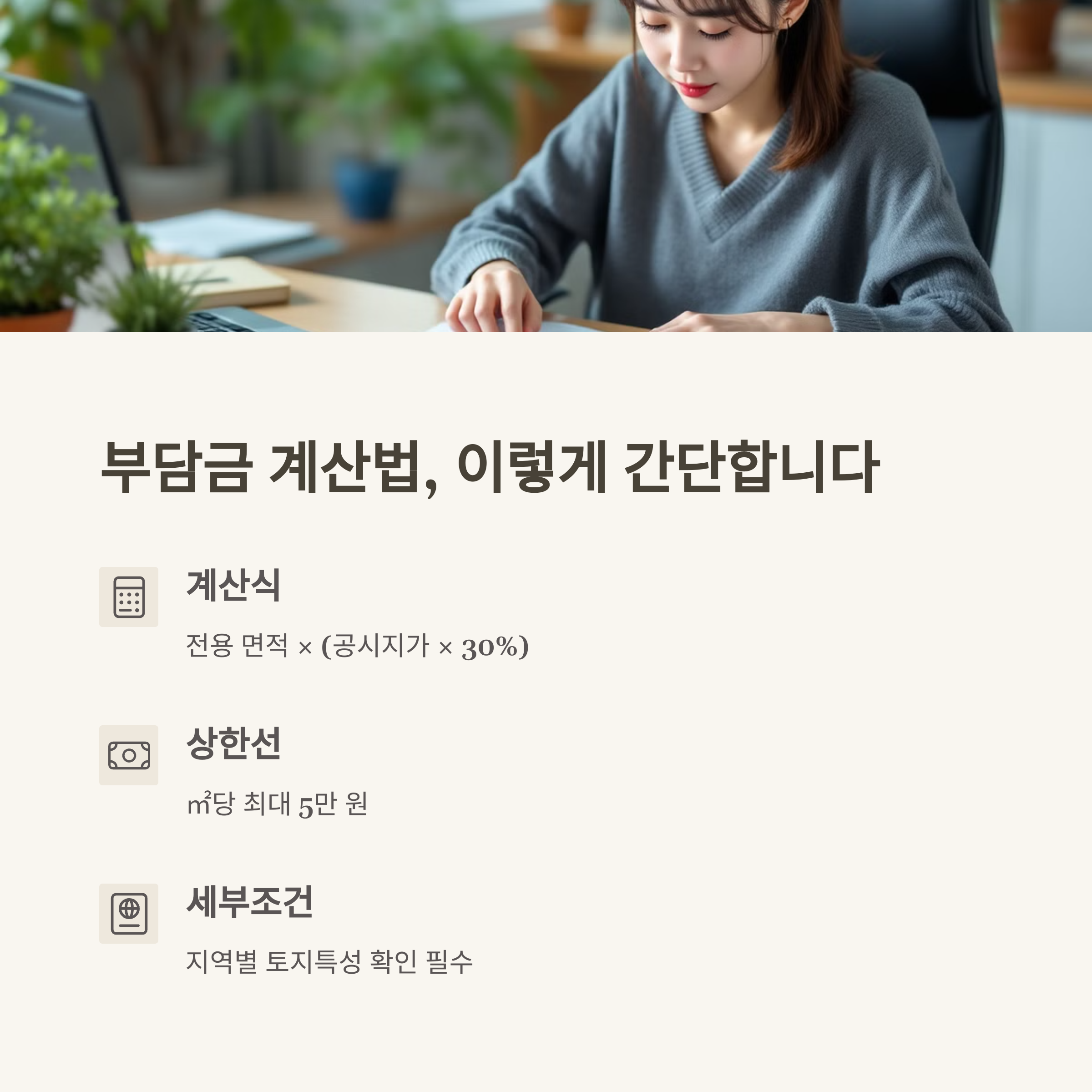 농지전용 부담금은 농지를 농업 외 용도로 바꿀 때 내는 비용이에요. 계산법은 다음과 같습니다.