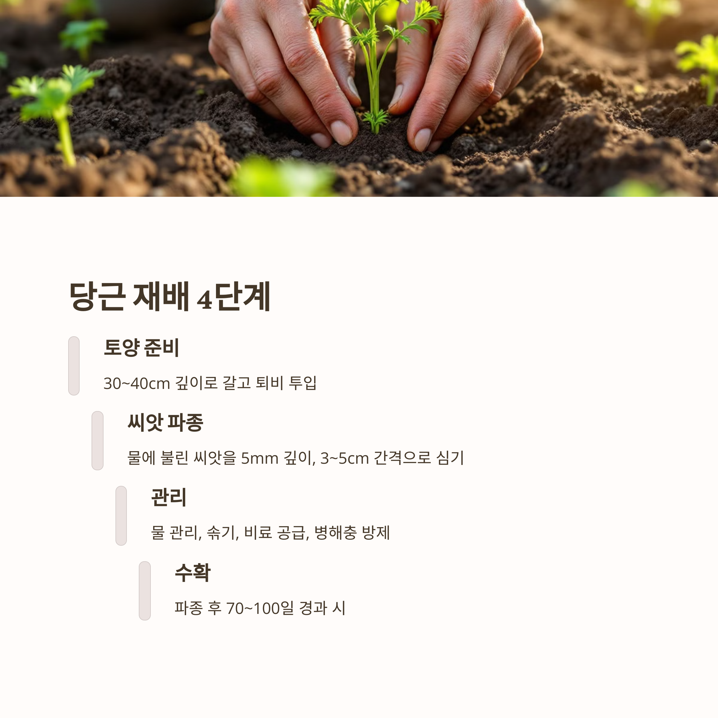 당근 재배방법에서 관리 단계는 성공의 열쇠예요. 물, 솎기, 비료, 병해충 관리를 상세히 알아봅시다.