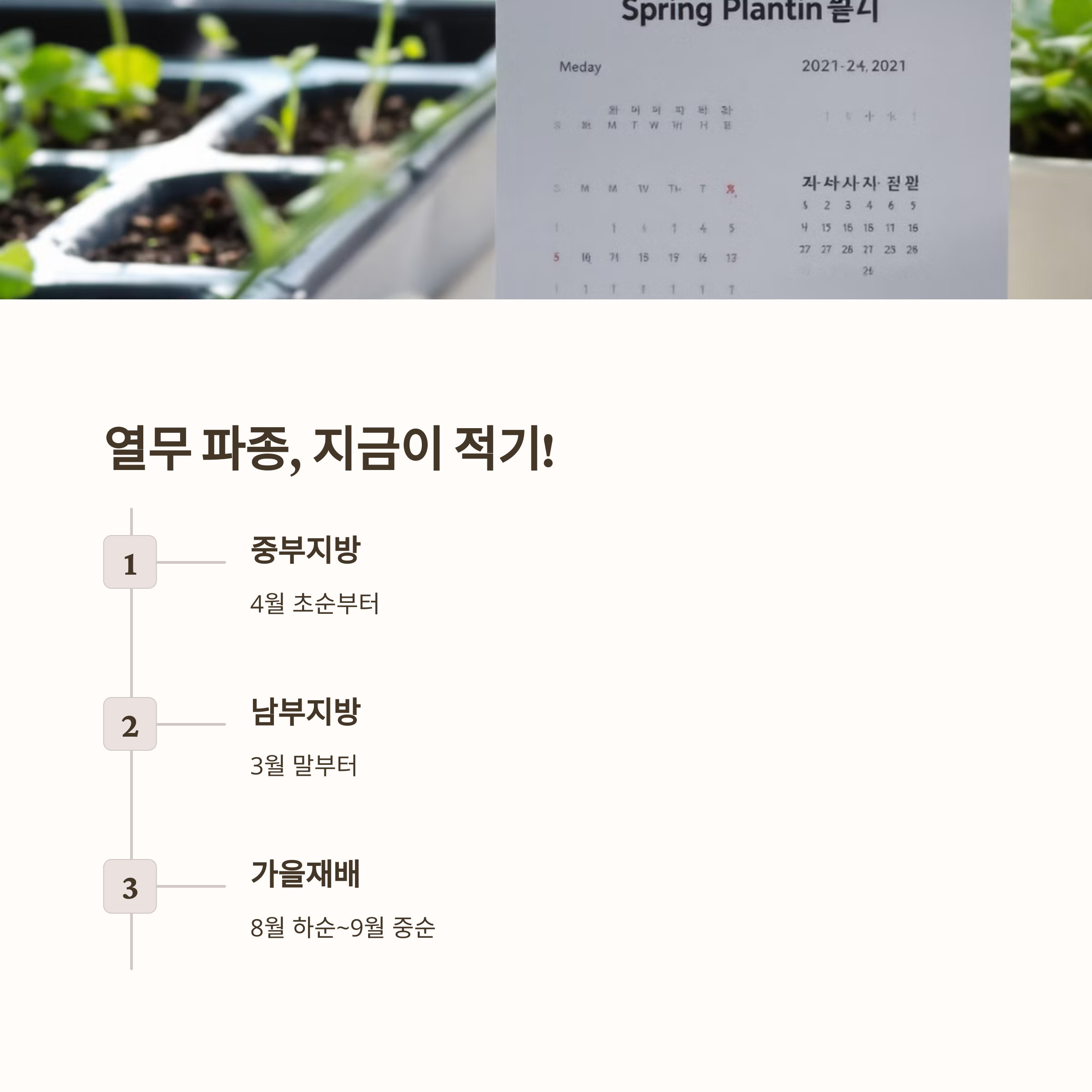 특히 중부지방에서는 4월 초순, 남부지방은 3월 말부터 시작하면 좋아요.