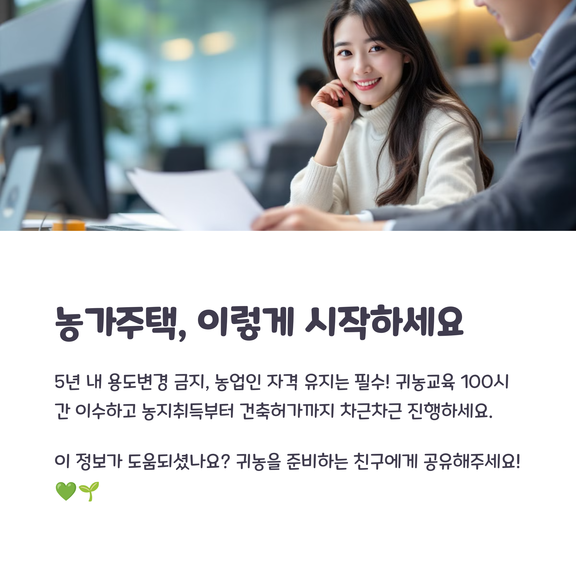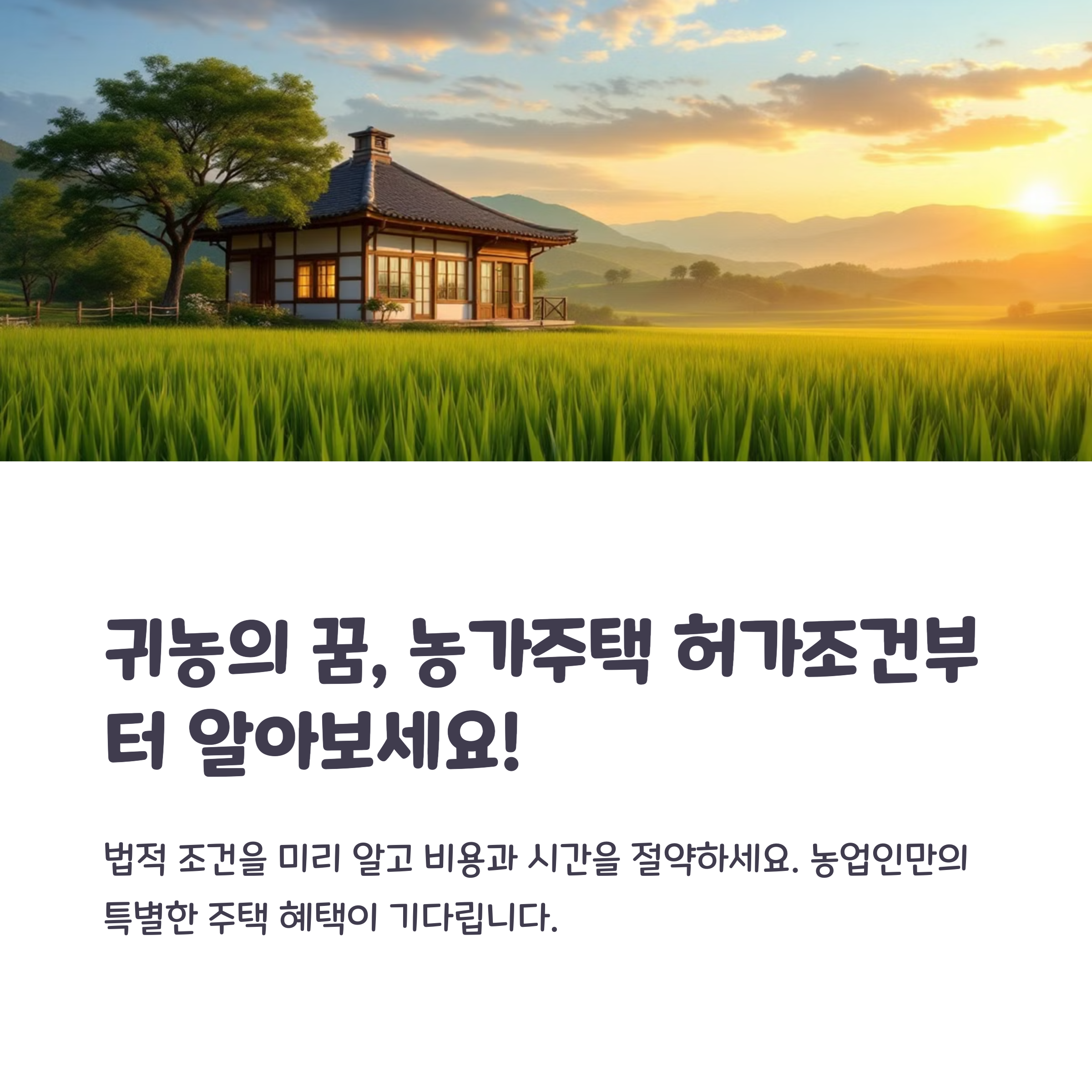 농지법과 건축법을 잘 따져가며 준비하면 귀농 생활의 첫걸음이 한결 수월해질 거예요.