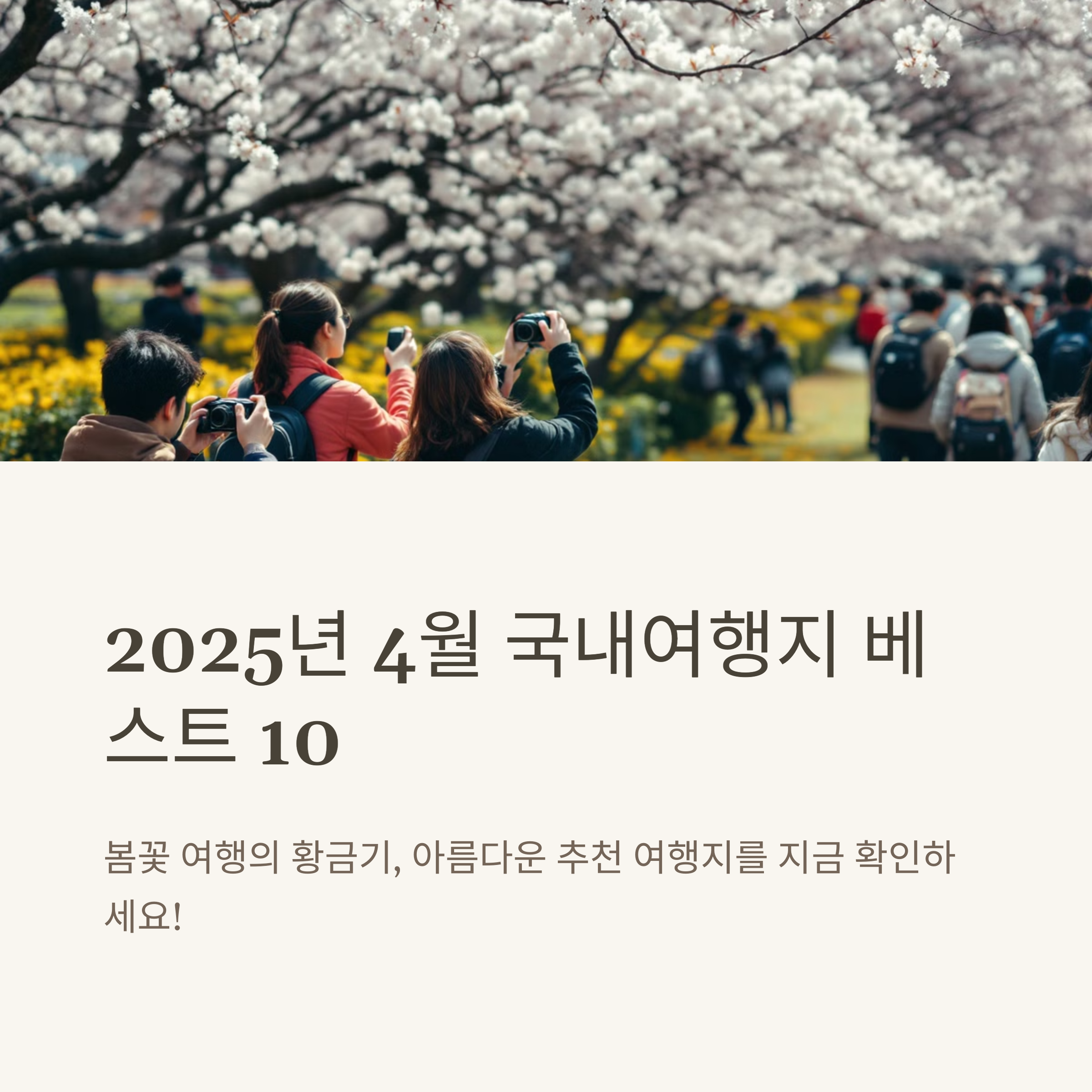 4월은 따스한 햇살과 꽃향기가 어우러진 여행의 황금 시즌이에요. 🌸 이번 글에서는 4월 국내여행지 베스트 10을 꼼꼼히 소개합니다. 단순한 장소 나열이 아닌, 여행 스타일별 추천 포인트와 실용적인 팁까지 담았어요.