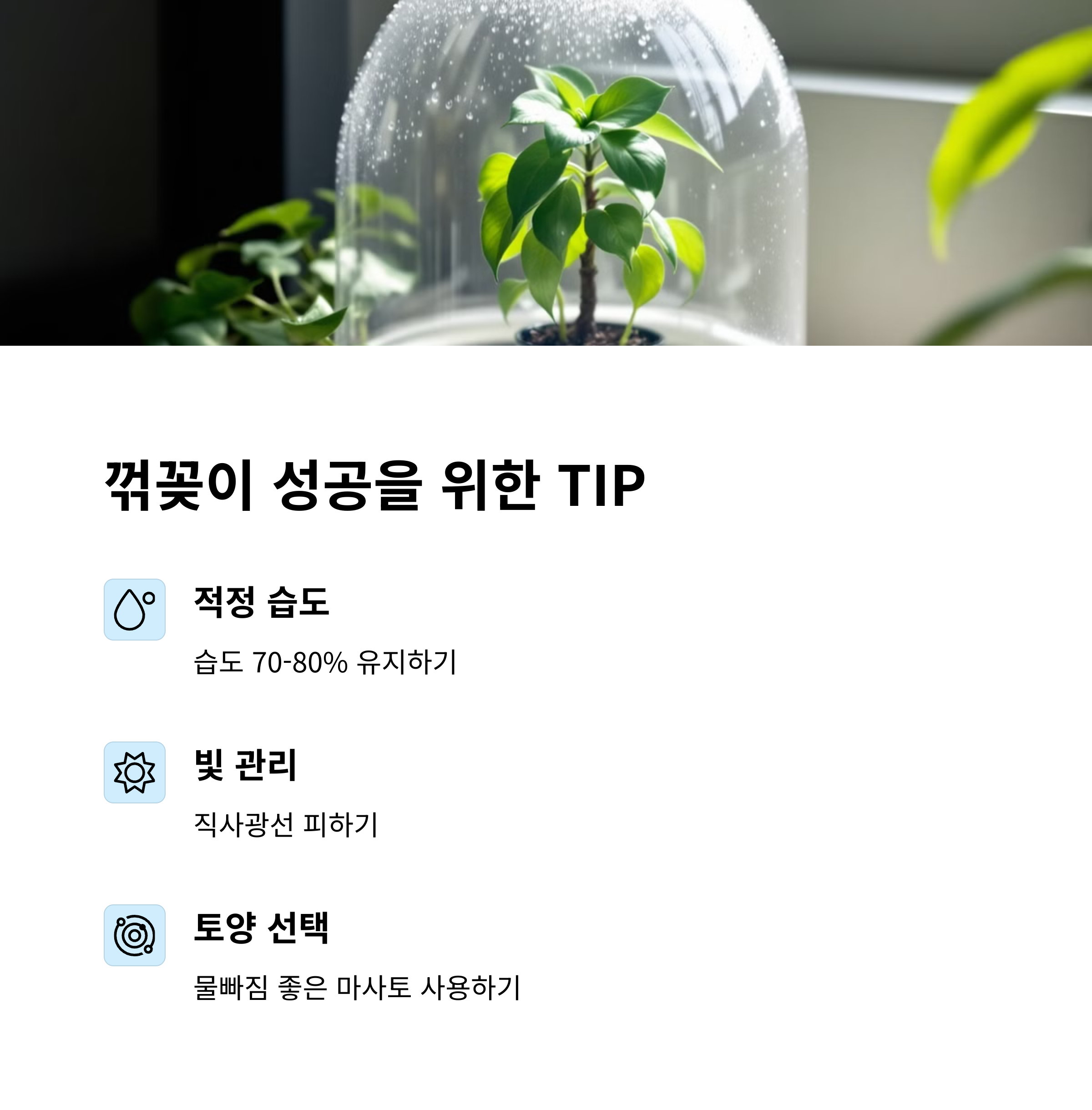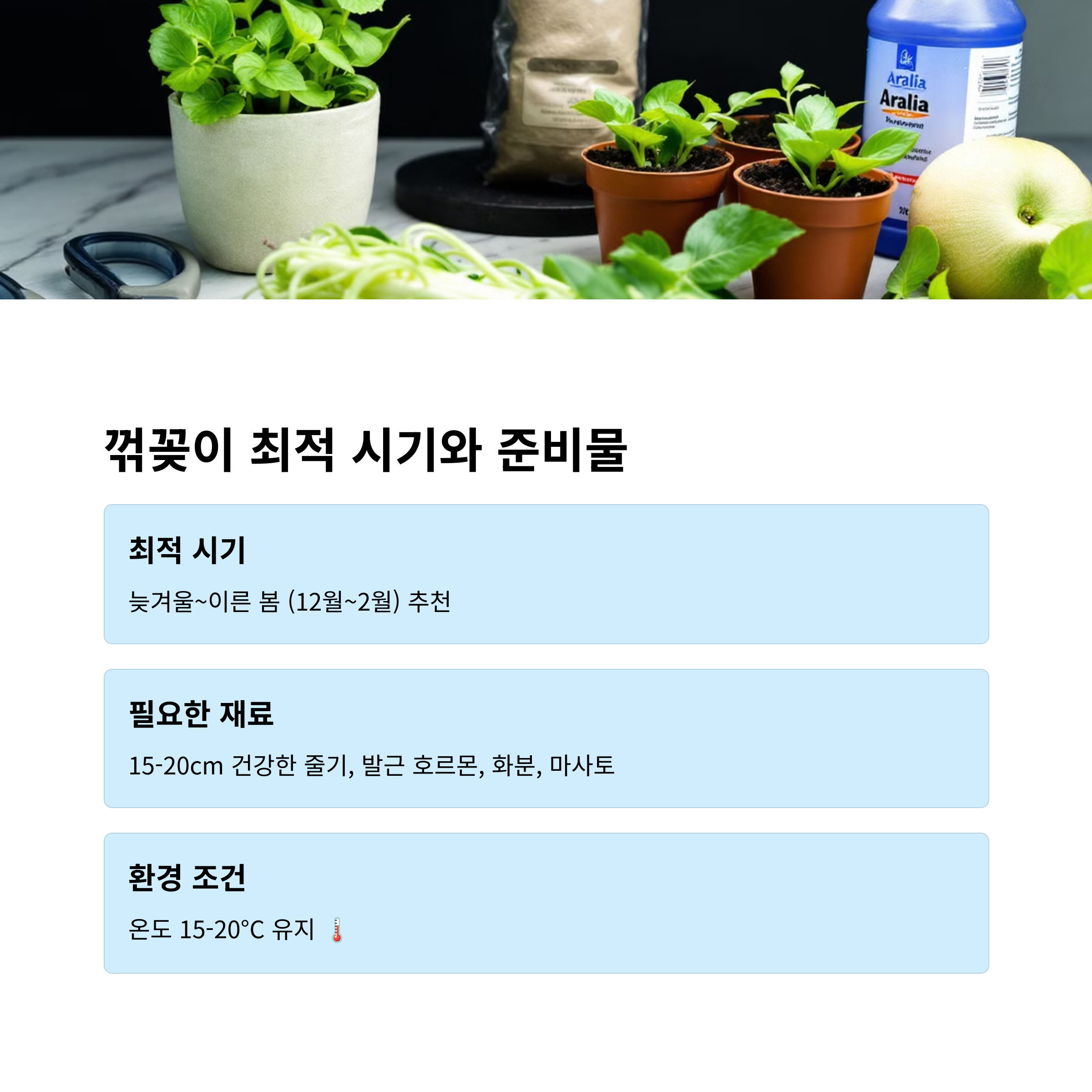 - 발근 호르몬과 습도 관리가 중요해요! 🌱