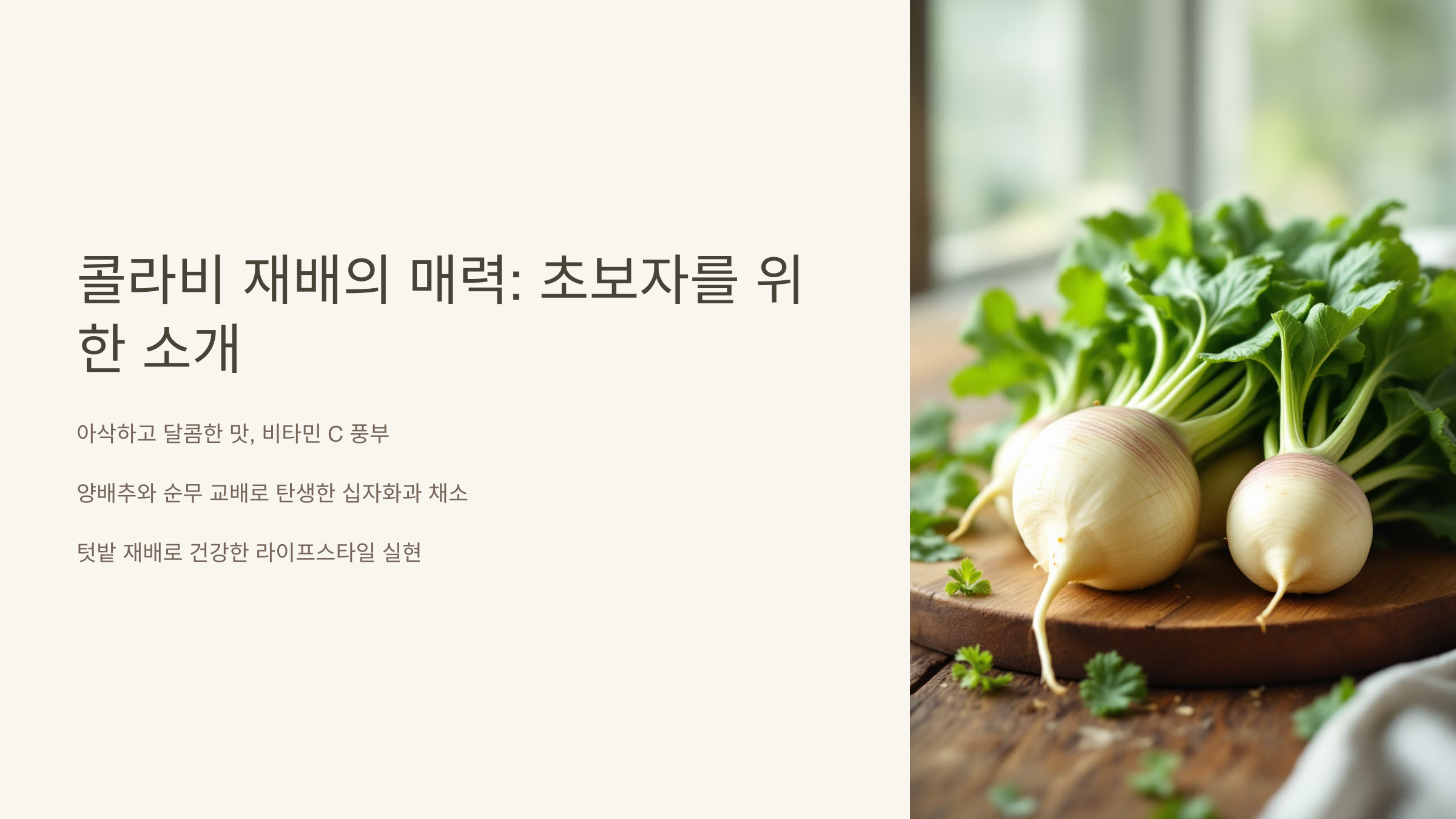콜라비는 아삭한 식감과 달콤한 맛으로 텃밭에서 사랑받는 채소예요. 콜라비 재배방법은 초보자도 쉽게 따라 할 수 있을 만큼 간단하지만, 몇 가지 요령을 알면 더 풍성한 수확을 얻을 수 있습니다.
