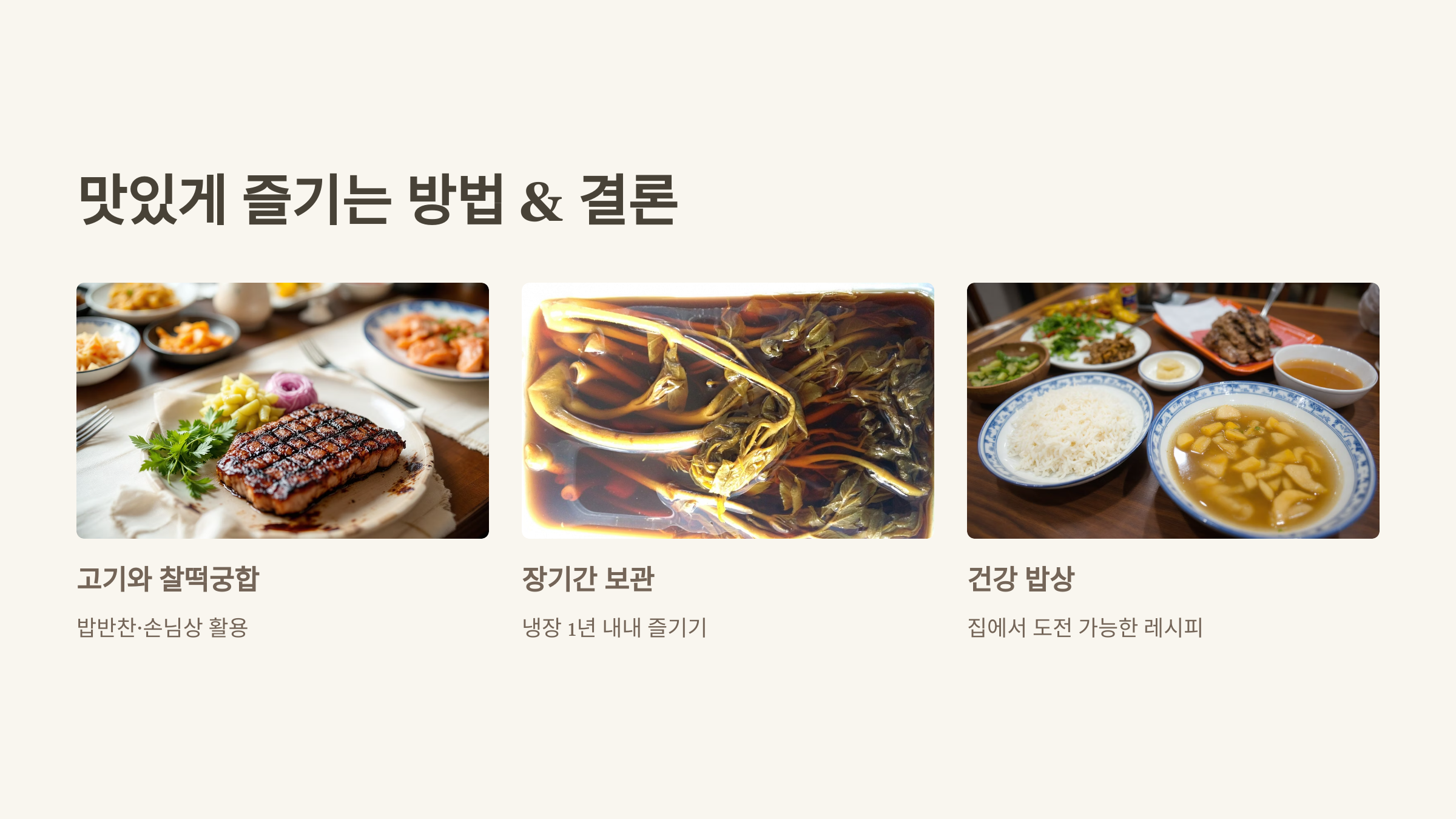 • 숙성될수록 깊은 맛이 나지만, 너무 오래 두면 식감이 무를 수 있습니다.