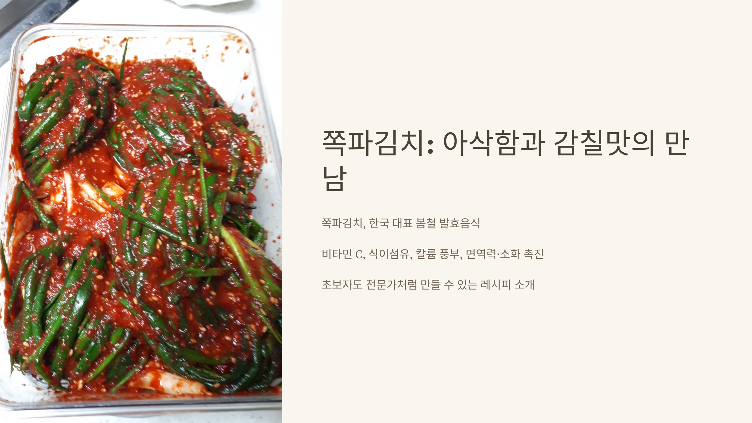 이 글에서는 쪽파 선별부터 양념, 발효, 보관까지 모든 단계를 상세히 안내합니다. 초보자도 쉽게 따라 할 수 있는 레시피로 지금 시작해볼까요? 😊