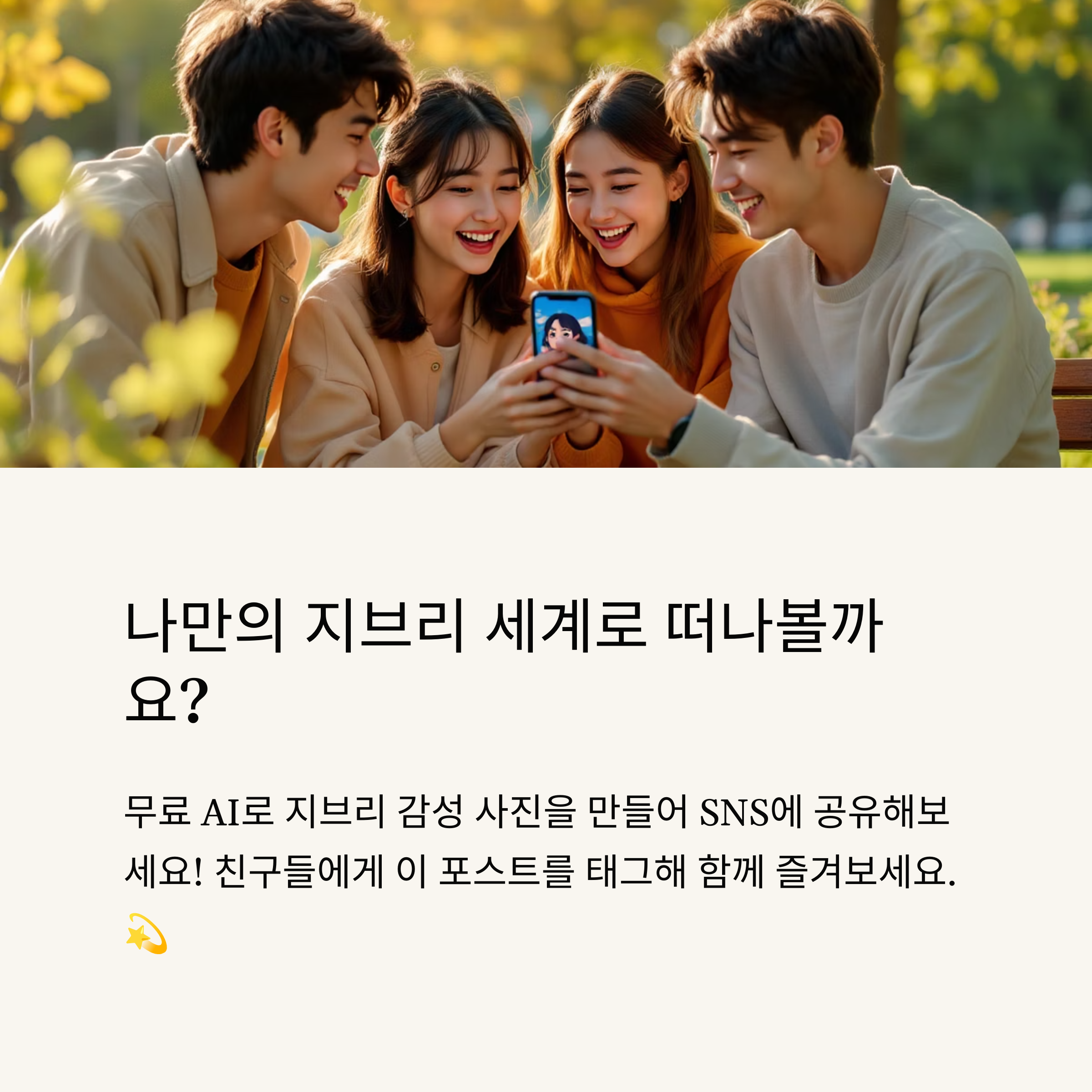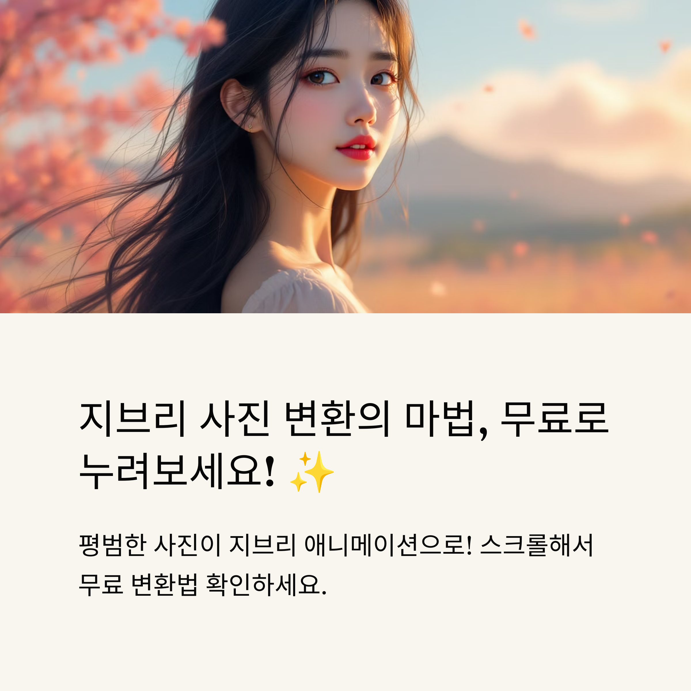 - SNS 공유 전략: 변환된 사진은 Instagram, TikTok, X에 공유하면 큰 반응을 얻습니다. #GhibliStyle, #AIPhoto 같은 해시태그를 추가하세요! 😊