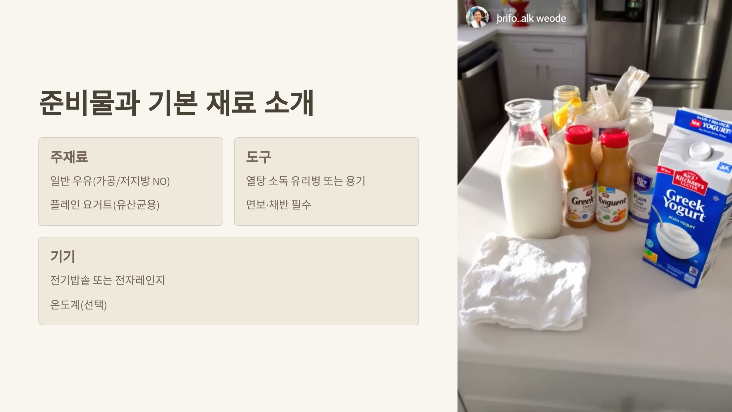 요거트 만드는 방법은 간단하지만, 정확한 재료와 도구가 성공의 열쇠예요. 아래 표에서 필요한 준비물을 확인하세요.