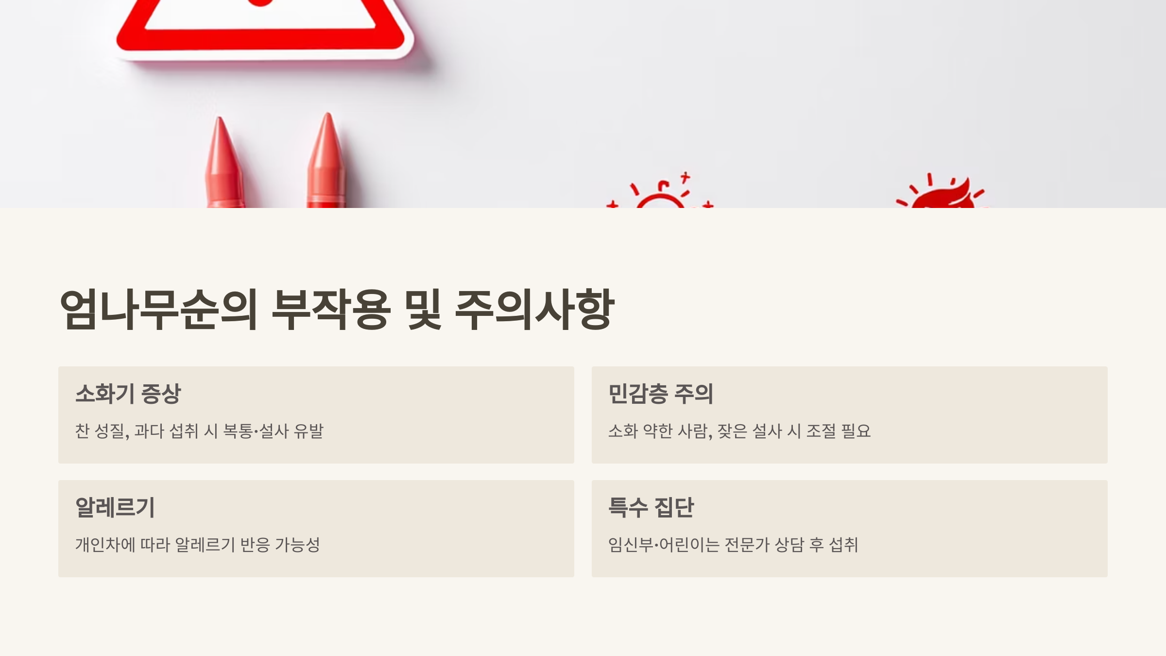 해결법: 처음에는 소량(50g 이하)부터 섭취하며 몸의 반응을 확인하세요. 소화기 약한 분은 데친 후 하루 물에 우려내어 먹으면 부담이 줄어듭니다.