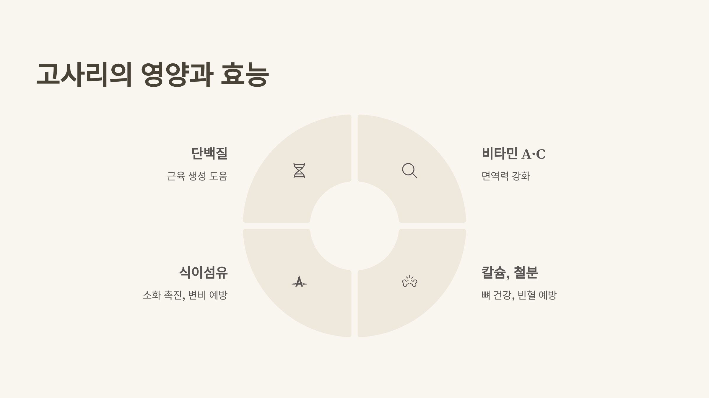 고사리는 단백질, 비타민 A, C, 칼슘, 철분, 섬유질이 풍부해 건강에 이롭습니다. 뼈 건강과 혈액 순환을 돕고, 섬유질 덕분에 소화에도 좋아요. ‘산에서 나는 소고기’라는 별칭처럼 영양가가 높아 고사리나물을 식탁에 올리면 맛과 건강을 동시에 챙길 수 있습니다. 🌿