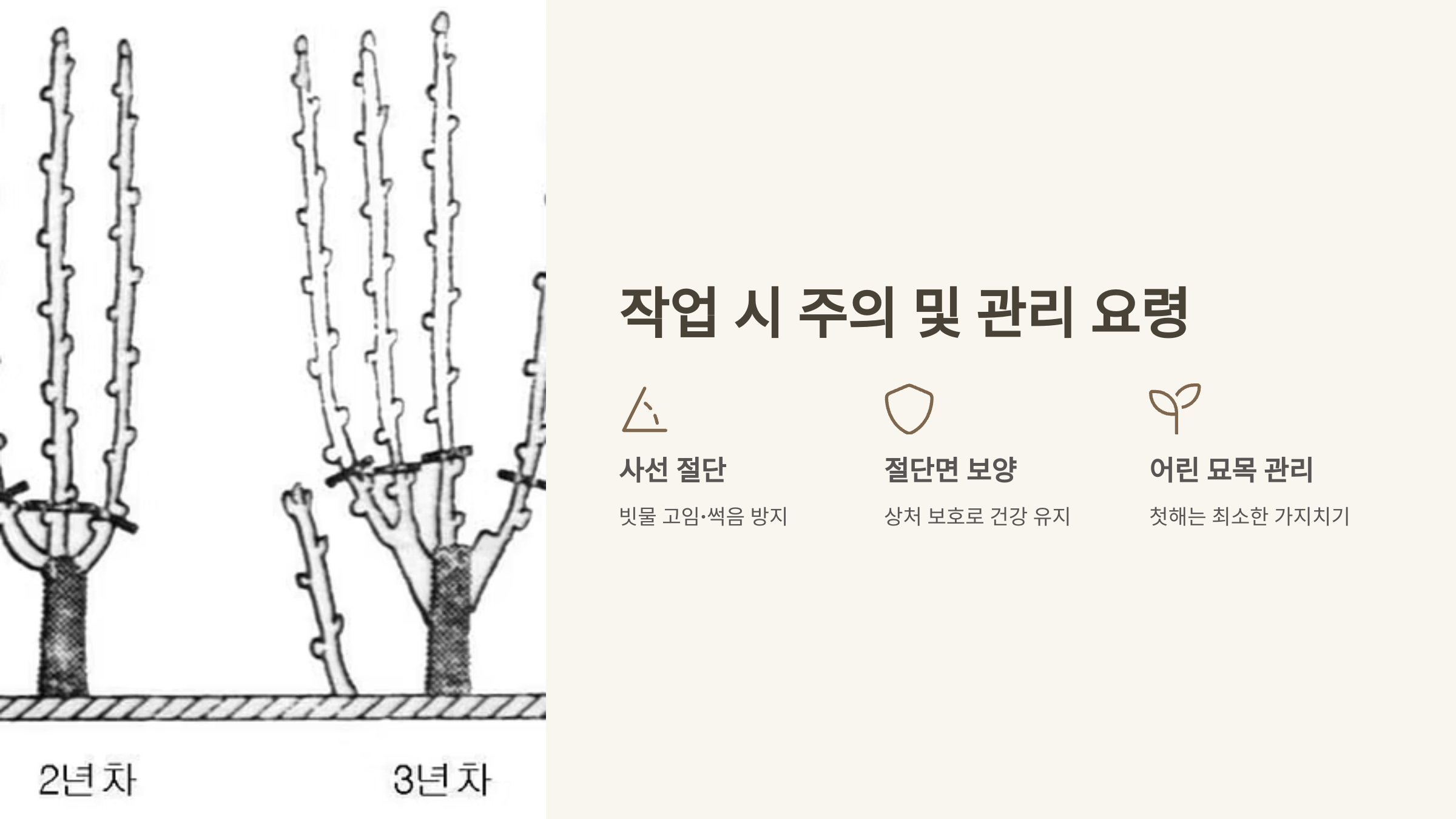 | 2년차 | 1.5~2m 높이로 유지한다. | 적정 크기 유지, 관리 편의성 |