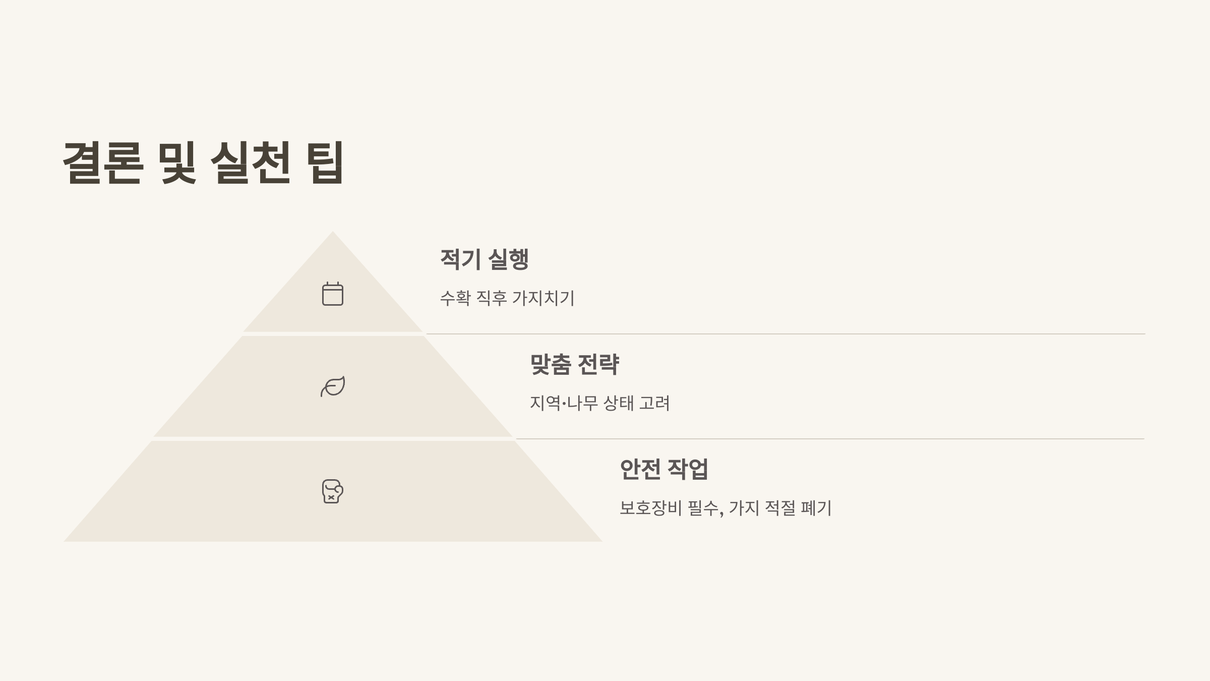 | 연차 | 가지치기 방법 | 목적 |
