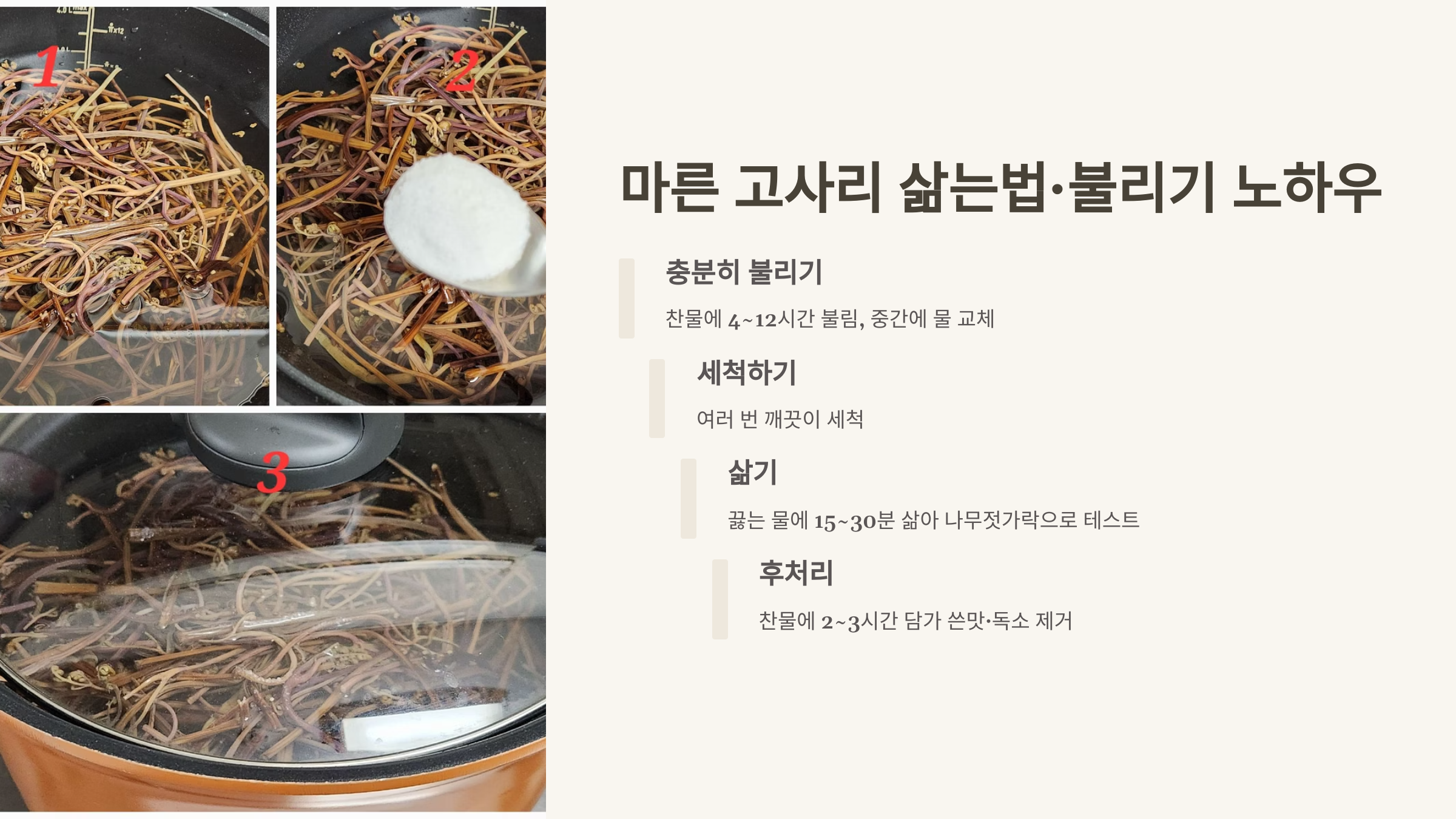 고사리 두께 불리는 시간 삶는 시간 추천 팁