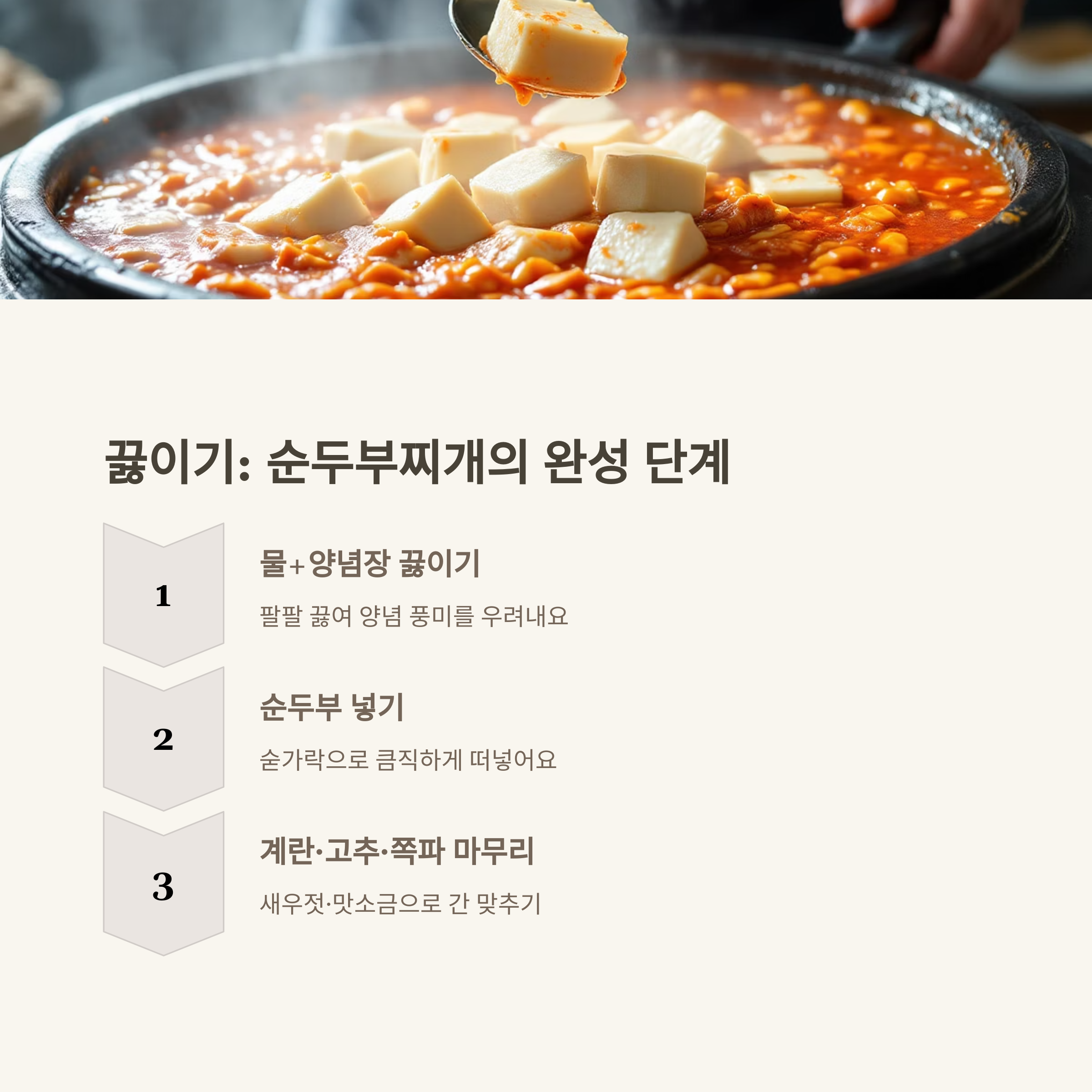-순두부 타이밍: 순두부는 끓기 시작한 후 넣어 부서지지 않도록 한다.