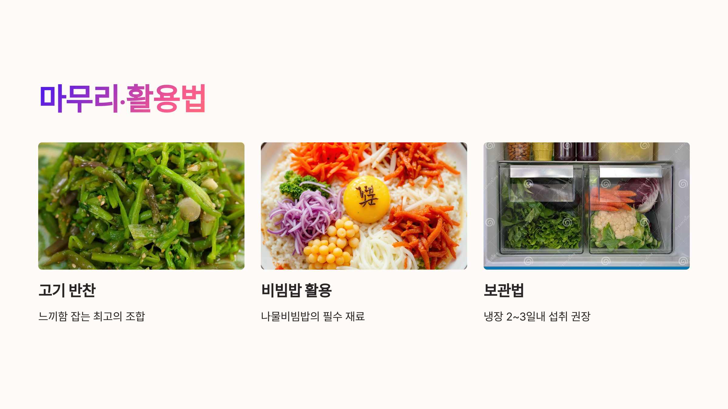 -보관법: 완성된 미나리무침은 밀폐용기에 담아 냉장고에서 2~3일 보관 가능합니다. 신선한 미나리는 뿌리를 물에 담가 냉장 보관하면 오래 유지돼요.