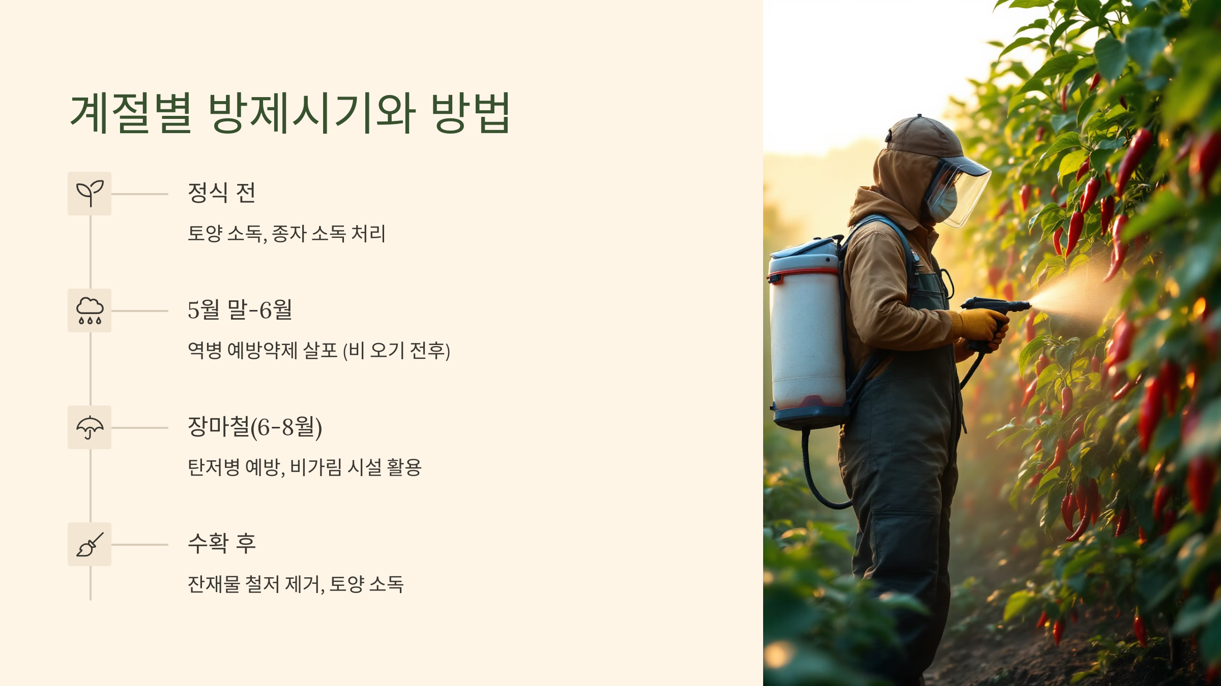 고추 병충해 방제시기를 정확히 지키는 건 풍성한 수확의 핵심이에요. 아래 표는 시기별 병해충과 방제법을 정리한 거예요.