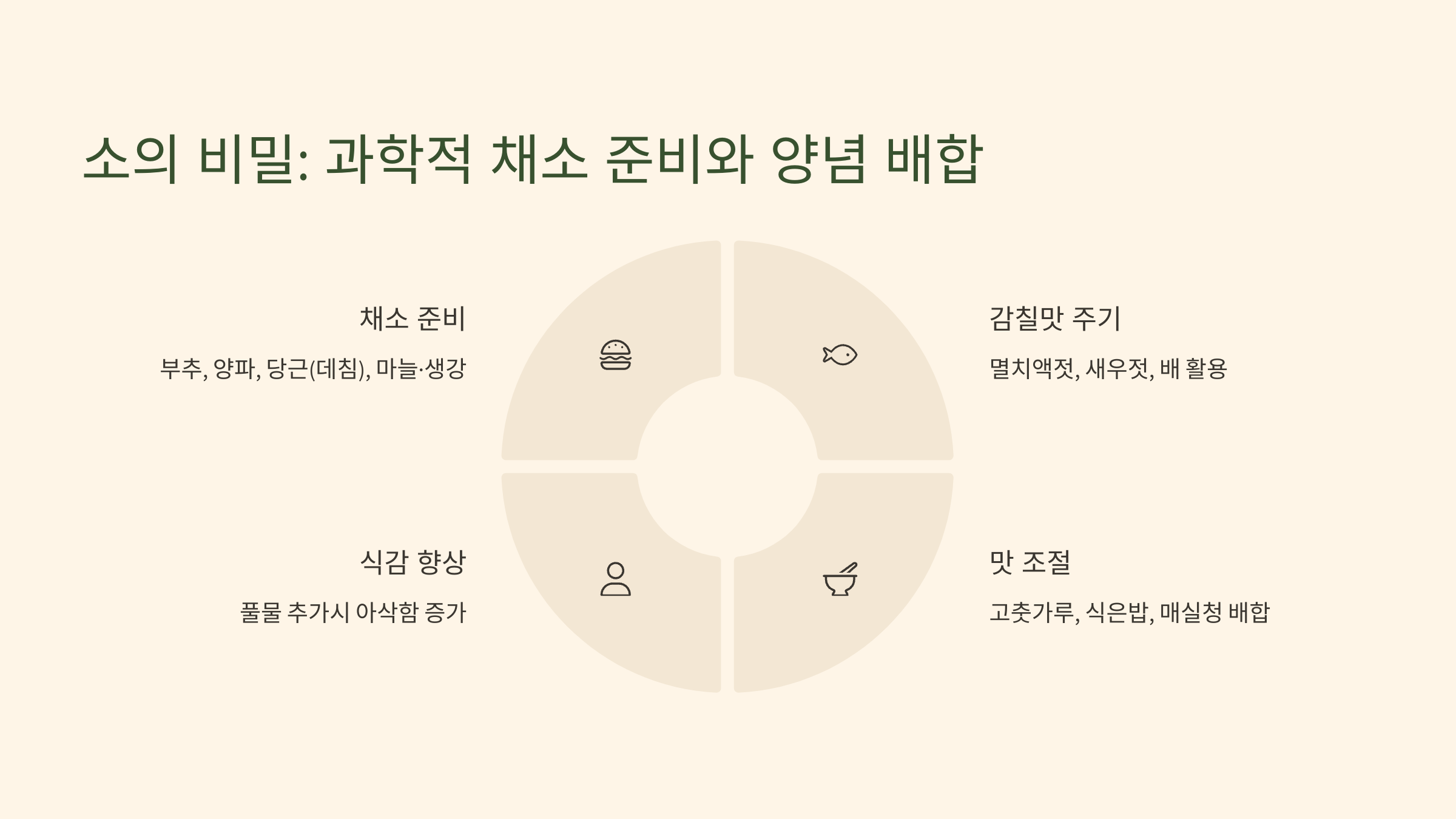 | 멸치액젓 | 4큰술 | 깊은 감칠맛 |