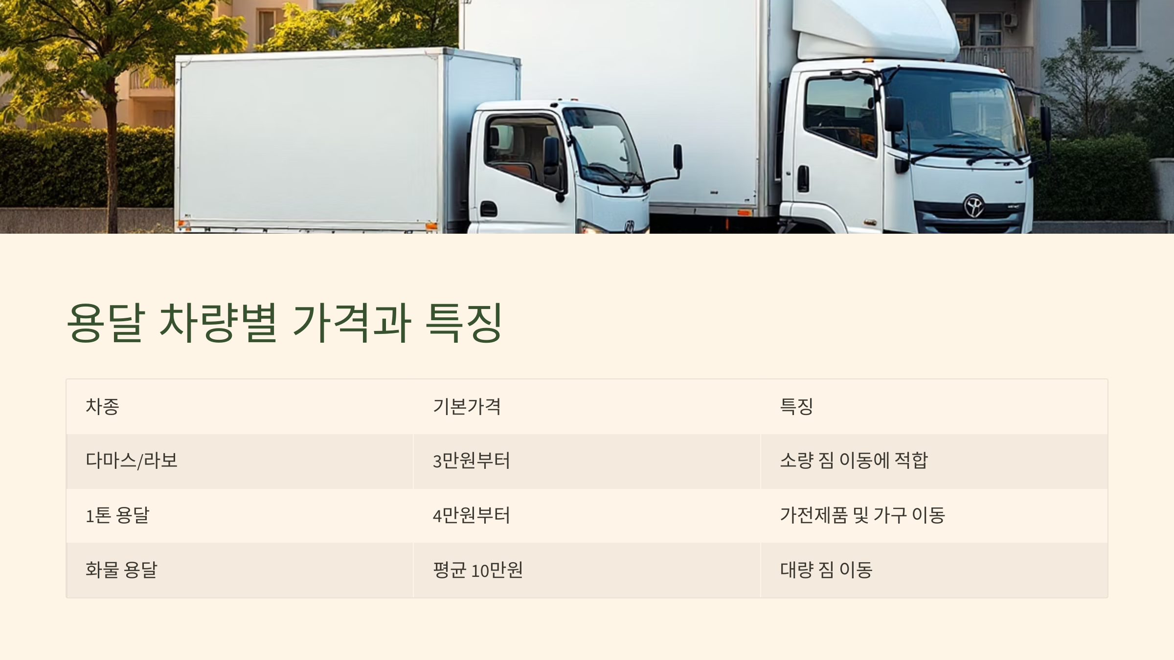 | 단거리 (10km 이내) | 기본 짐, 엘리베이터 이용 | 10만원 ~ 18만원 |
