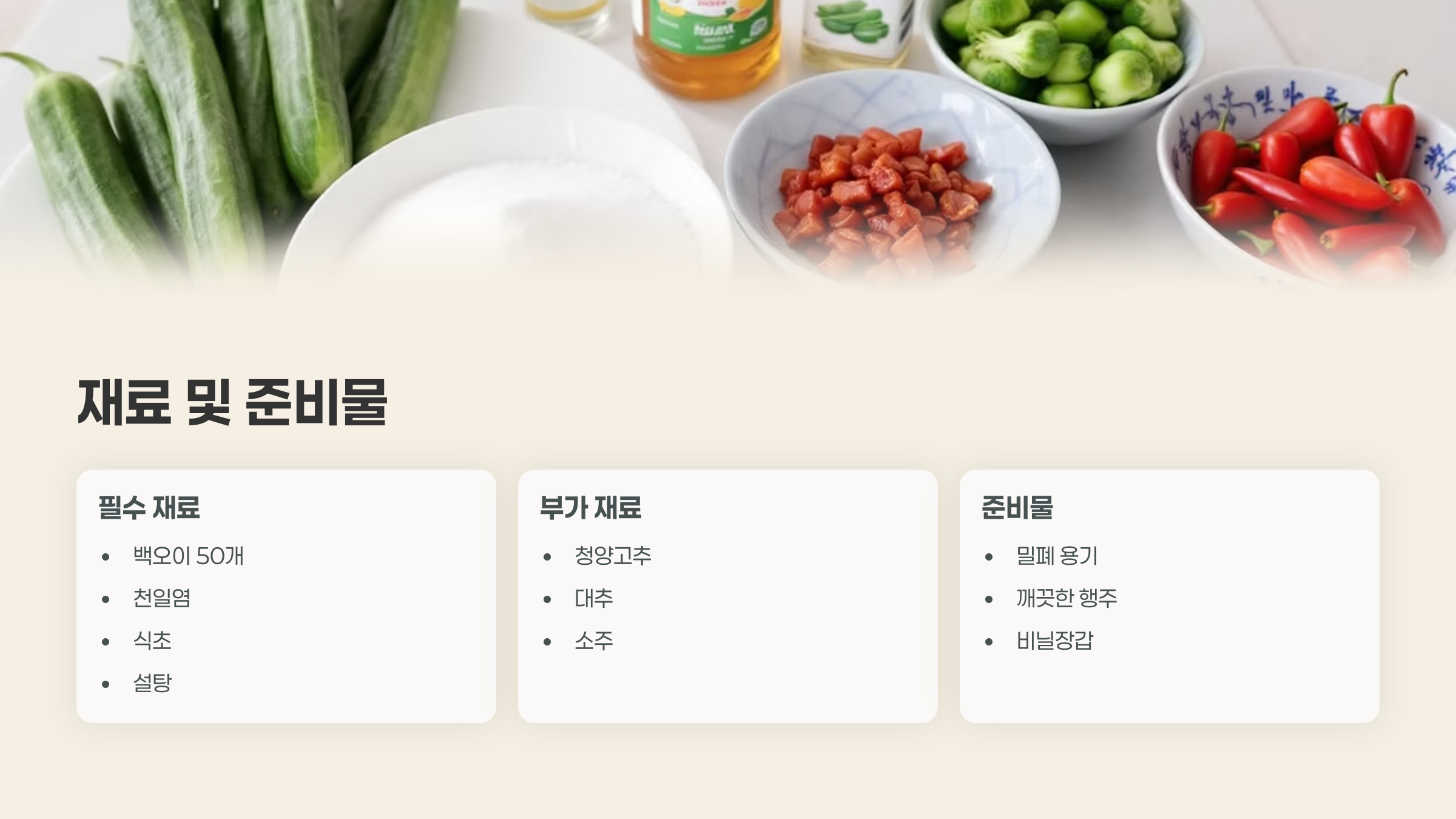 오이지 물없이담그는방법에 필요한 재료 📝