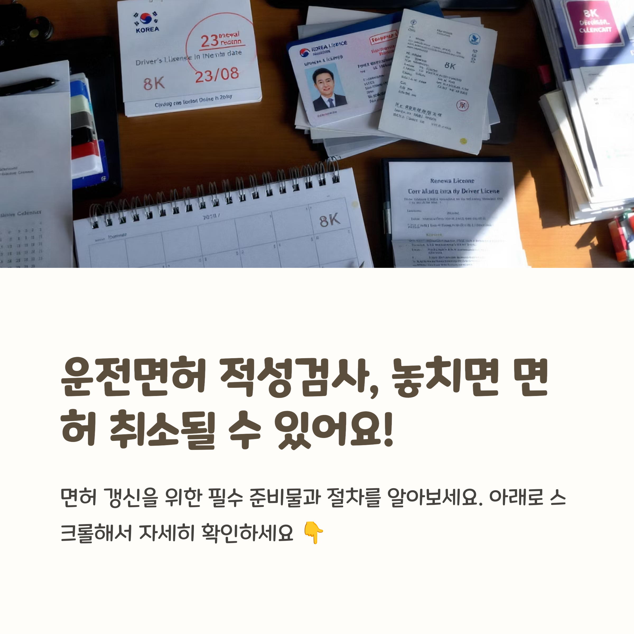 운전면허 적성검사 갱신은 면허 종류와 연령에 따라 주기가 다르며, 기간 내 갱신하지 않으면 면허가 취소될 수 있어 꼭 챙겨야 합니다.