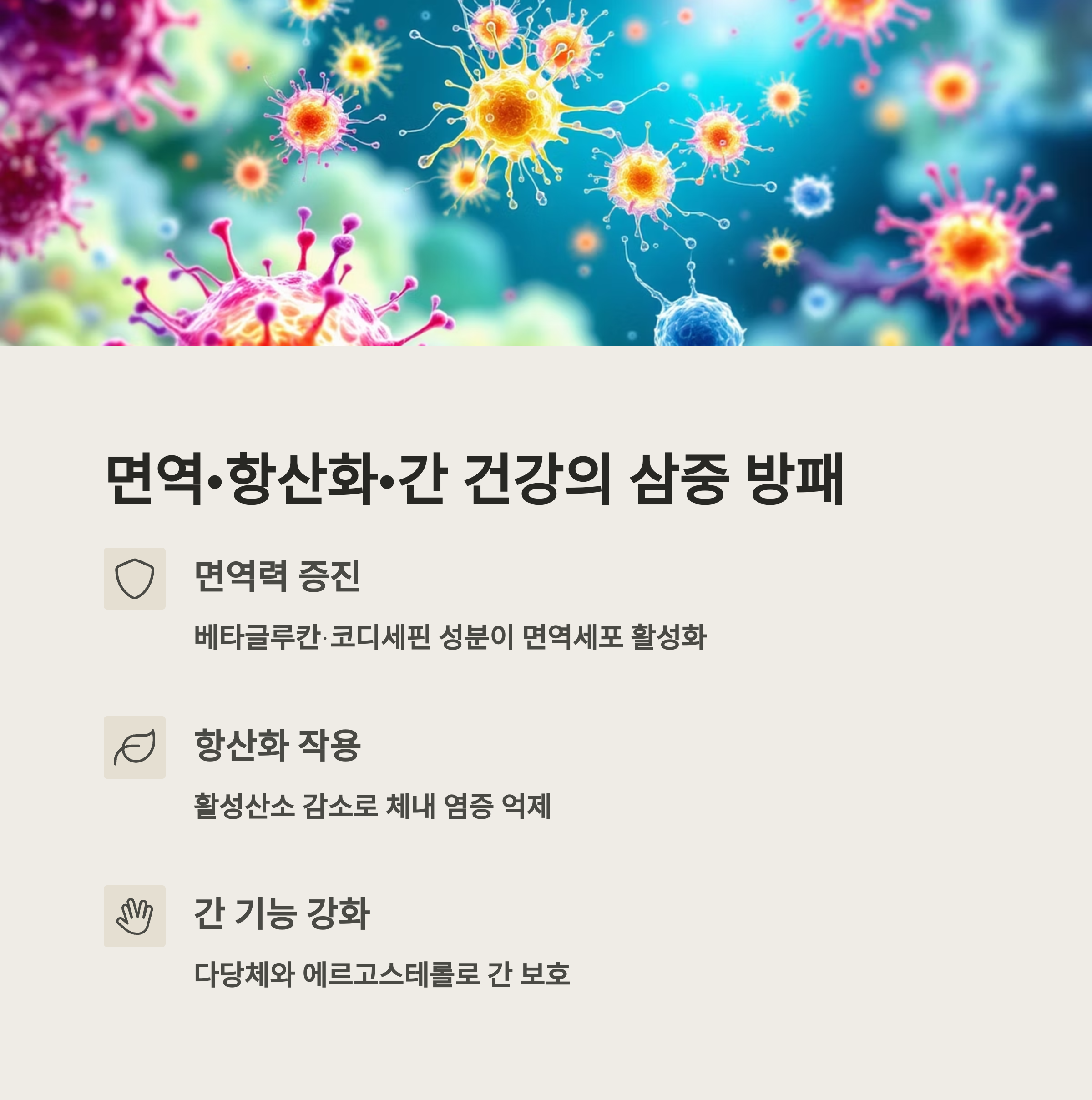 동충하초의 가장 주목받는 효능은 면역 체계 강화입니다. 동충하초에 함유된 베타글루칸과 폴리사카라이드는 면역 세포의 활성을 증가시켜 자연 면역력을 높이는 데 도움을 줍니다. 2023년 대한약학회지에 발표된 연구에 따르면, 동충하초 추출물을 정기적으로 섭취한 그룹에서 NK세포(자연살해세포) 활성이 약 30% 증가했다고 보고되었습니다.