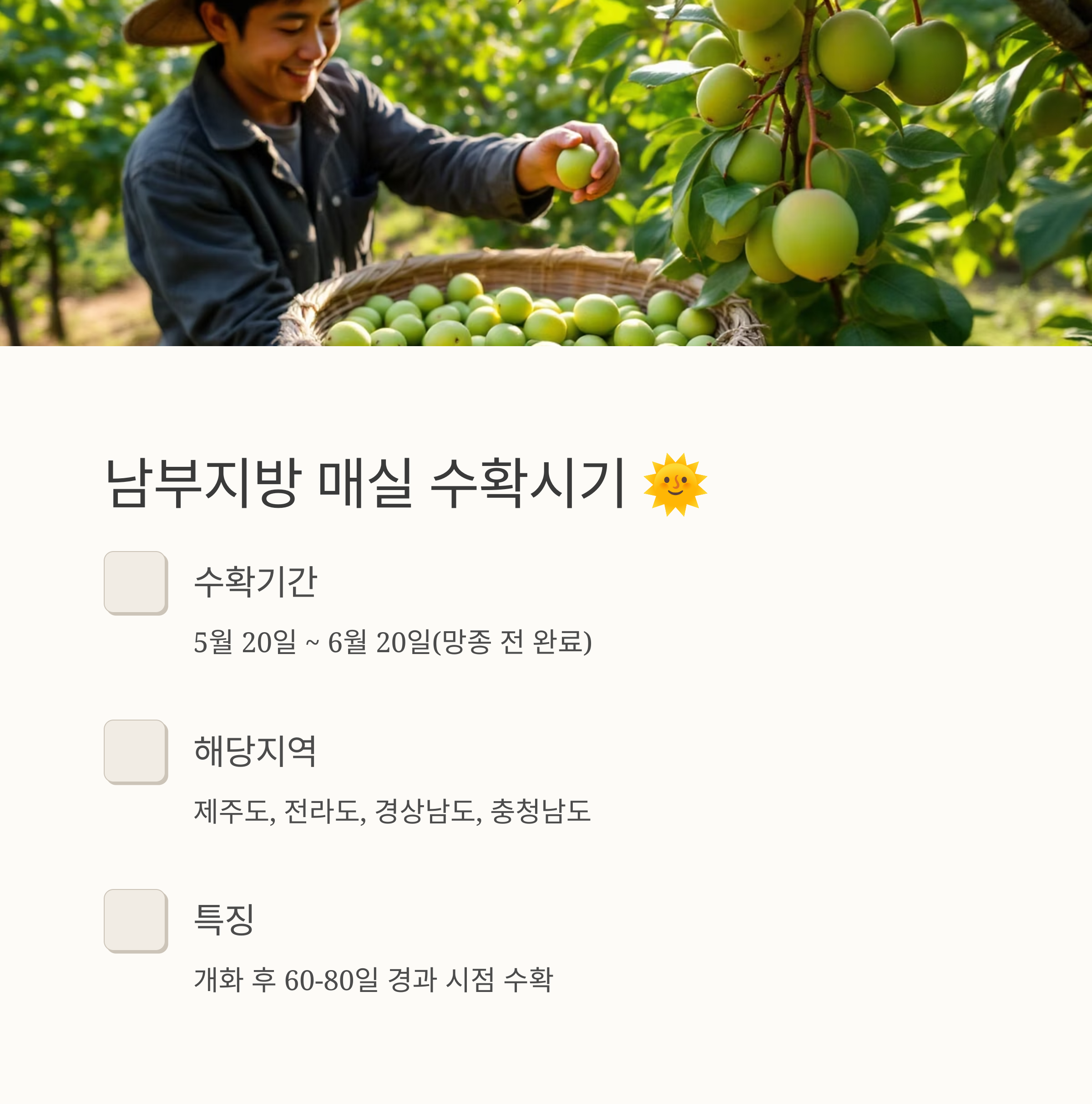 🔍 남부지방 주요 매실 수확 시기