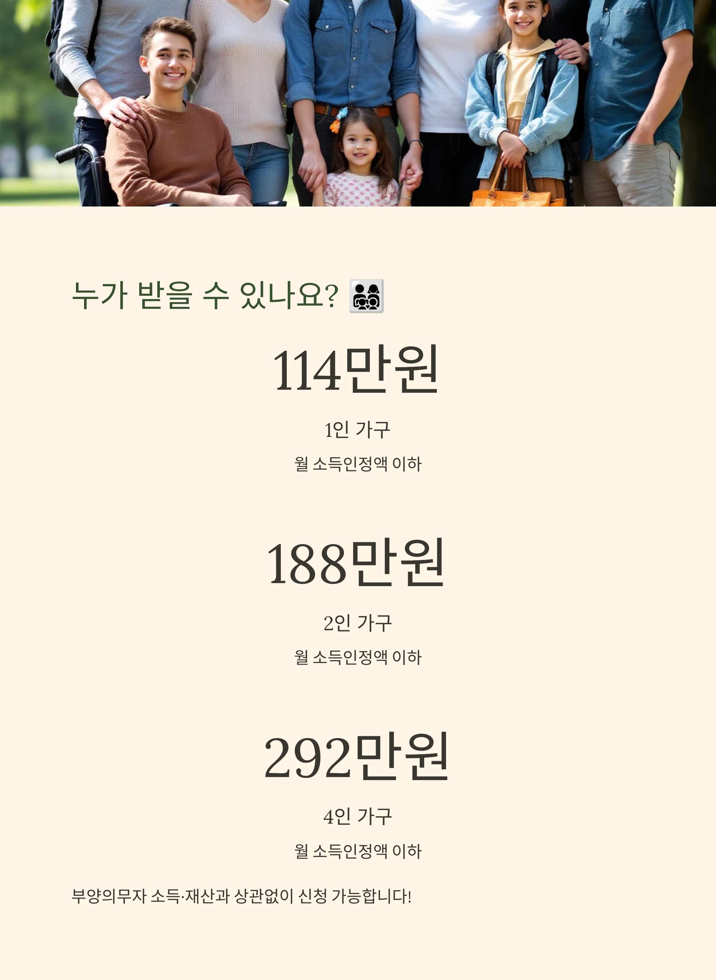 (매년 변동될 수 있으니 신청 시점의 정확한 기준 확인은 필수입니다!) 여기서 기준 중위소득이란, 우리나라 모든 가구를 소득 순으로 나열했을 때 정확히 중간에 있는 가구의 소득을 의미합니다.