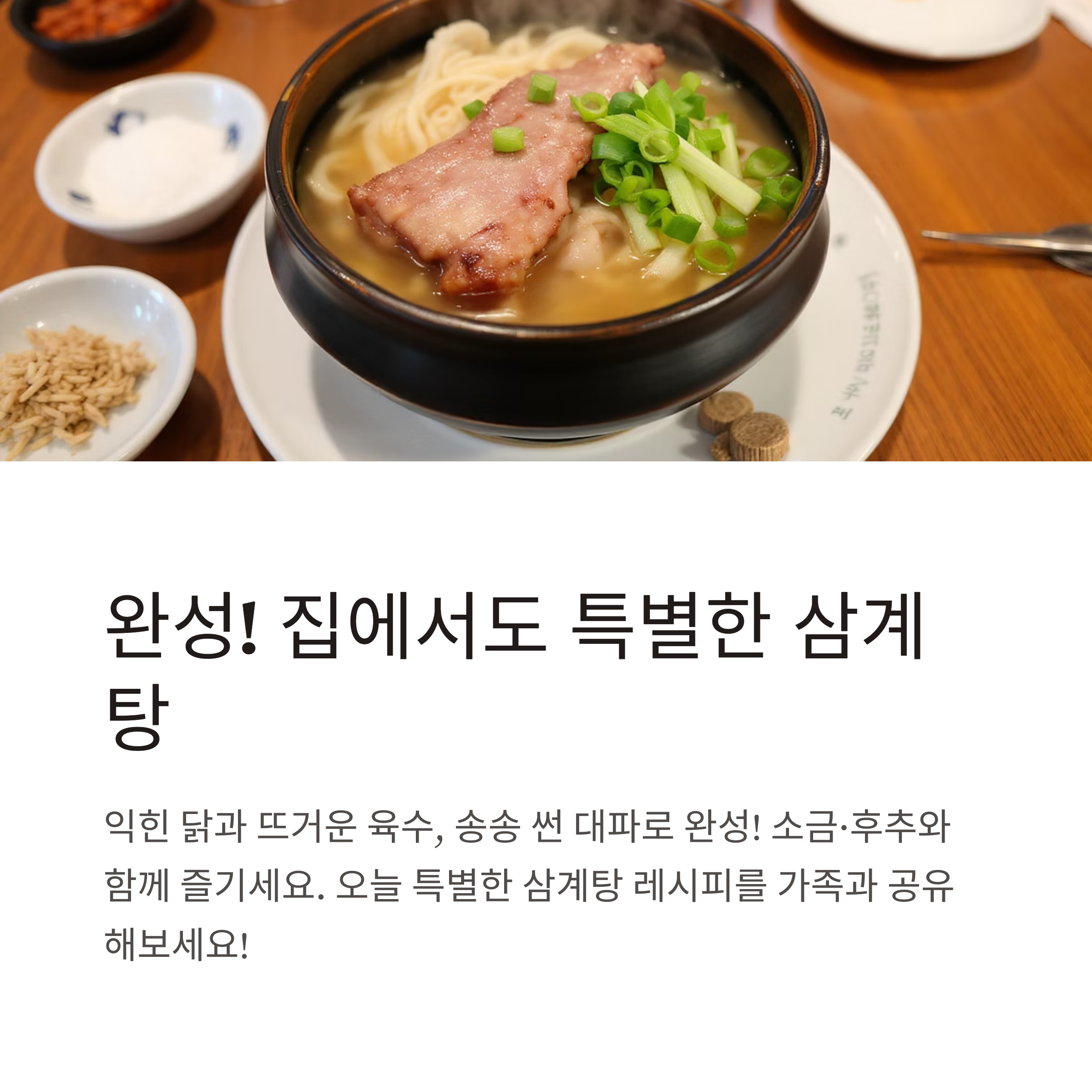 올여름, 직접 만든 따끈한 삼계탕으로 건강하고 활기차게 보내시길 바랍니다! 이제 여러분도 삼계탕 맛있게 끓이는법의 달인이 되실 수 있습니다. 😊