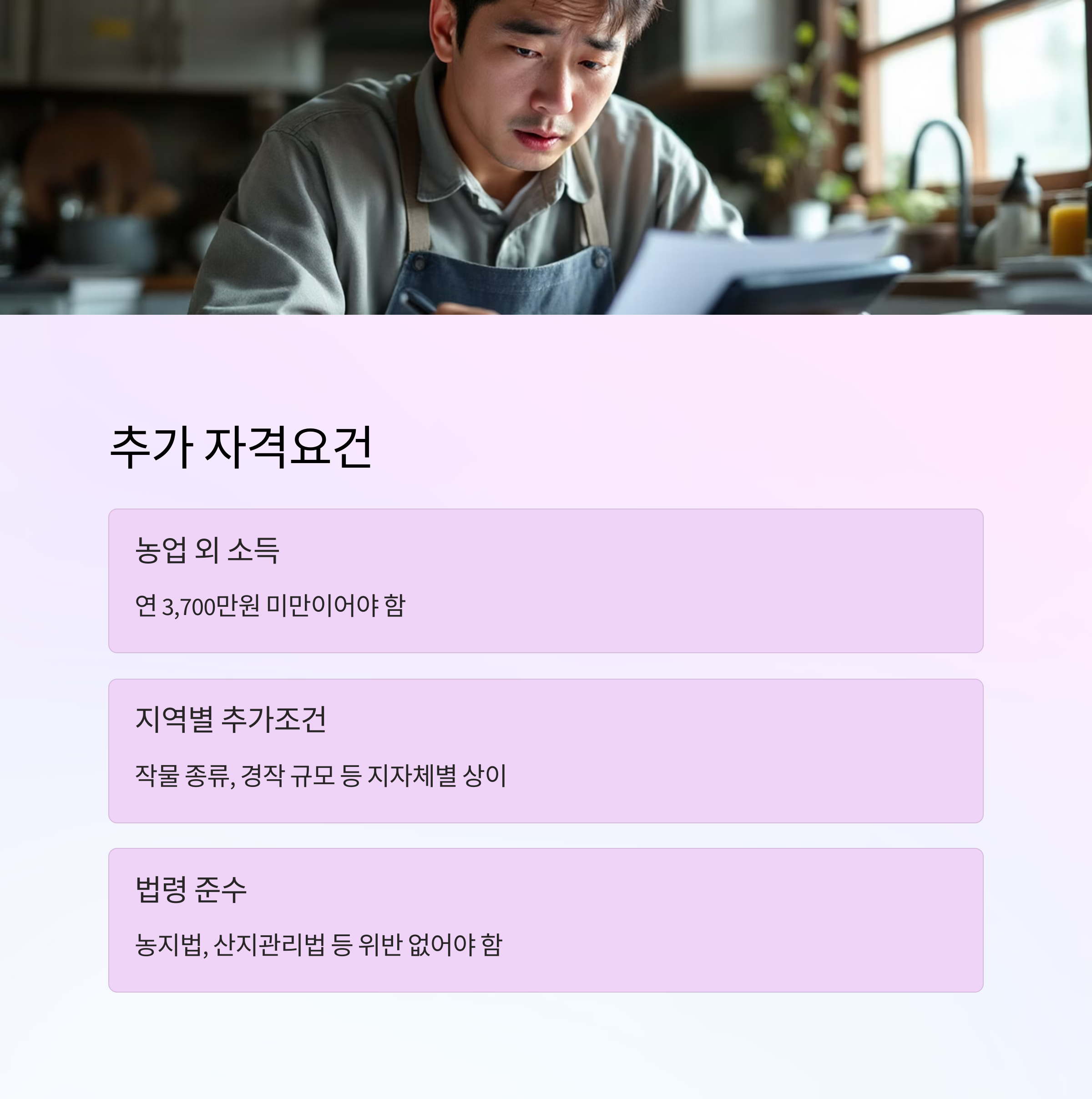 📌 농민수당 지원 기본 자격요건