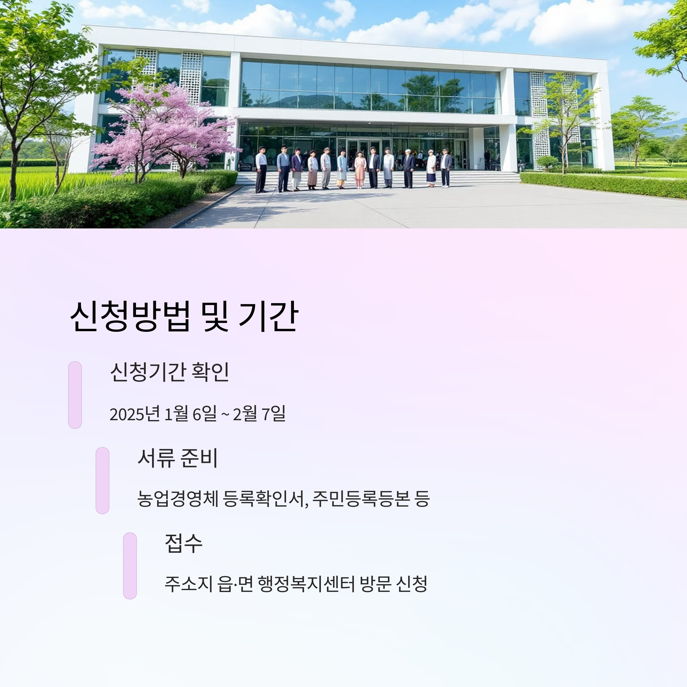 - 신청 장소: 읍·면·동 주민센터 또는 농업기술센터