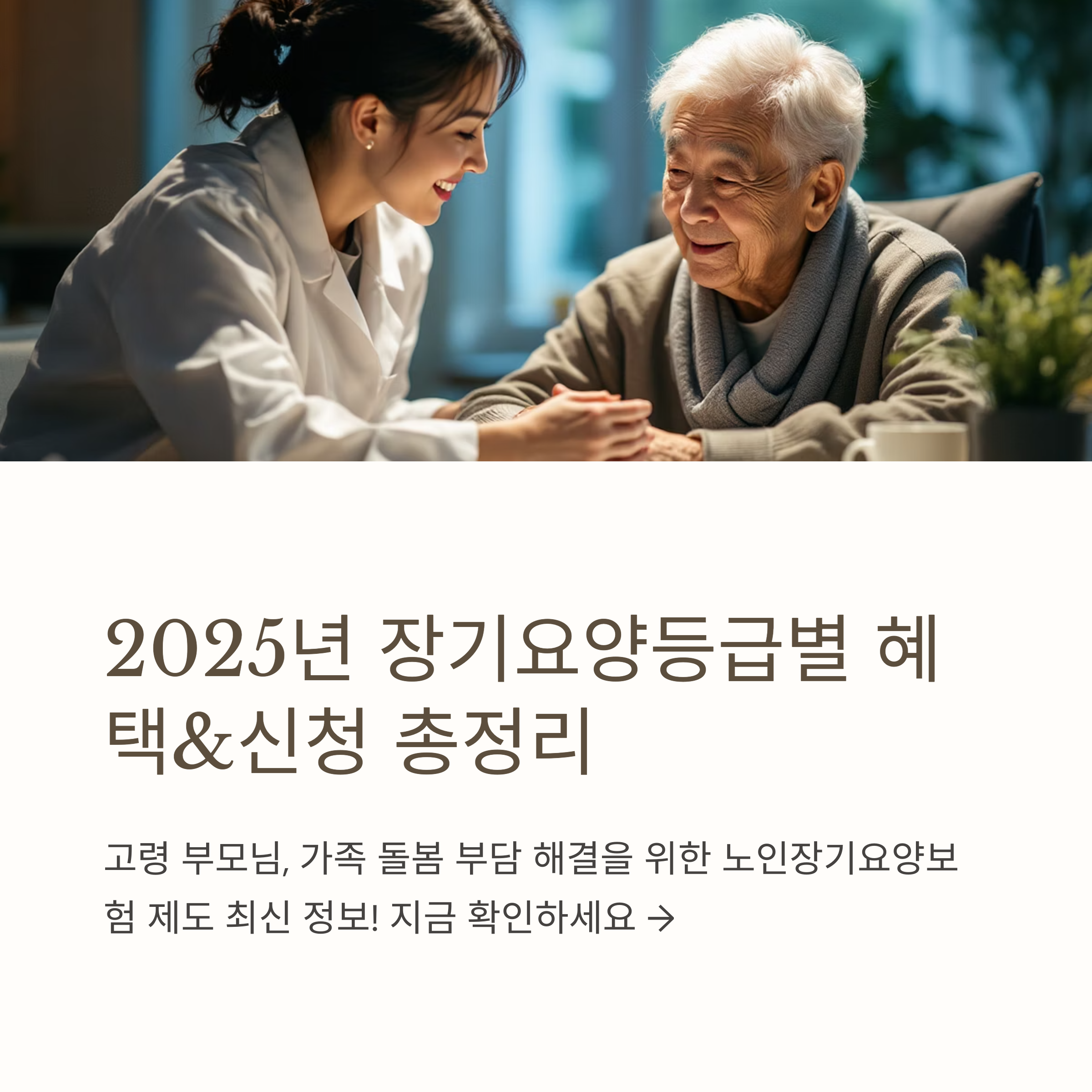 나이가 들거나 노인성 질병으로 인해 혼자 생활하기 어려워질 때, 국가에서 지원하는 노인장기요양보험 제도는 큰 힘이 될 수 있습니다. 어떤 혜택이 있고, 어떻게 신청해야 하는지 몰라 막막하셨다면 지금부터 집중해 주세요! 📌