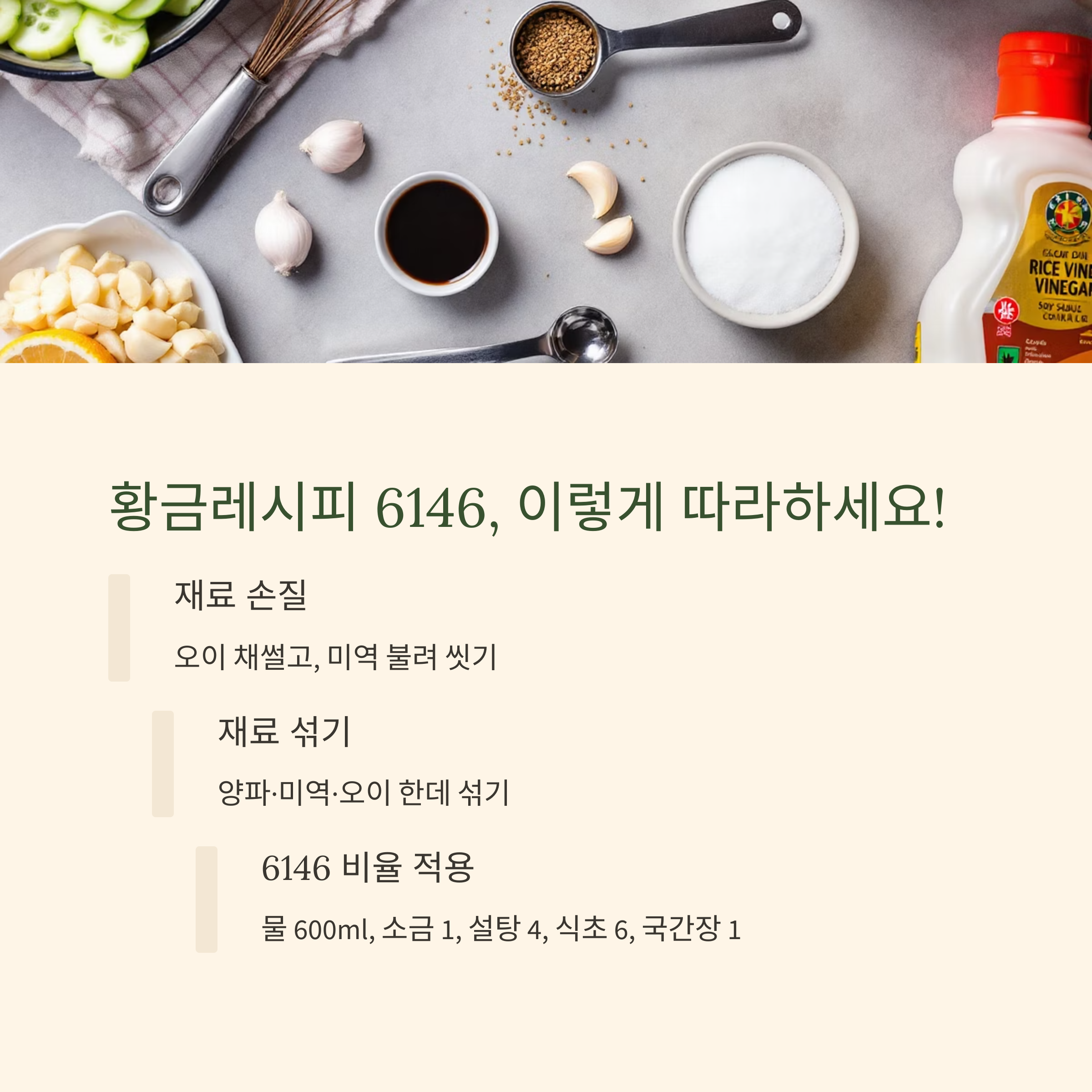 특히 많은 분들이 궁금해하시는 오이냉국 6146비율로 만들기 비법까지! 지금부터 저와 함께라면 누구나 전문가급 미역 오이냉국을 만들 수 있답니다. 📌