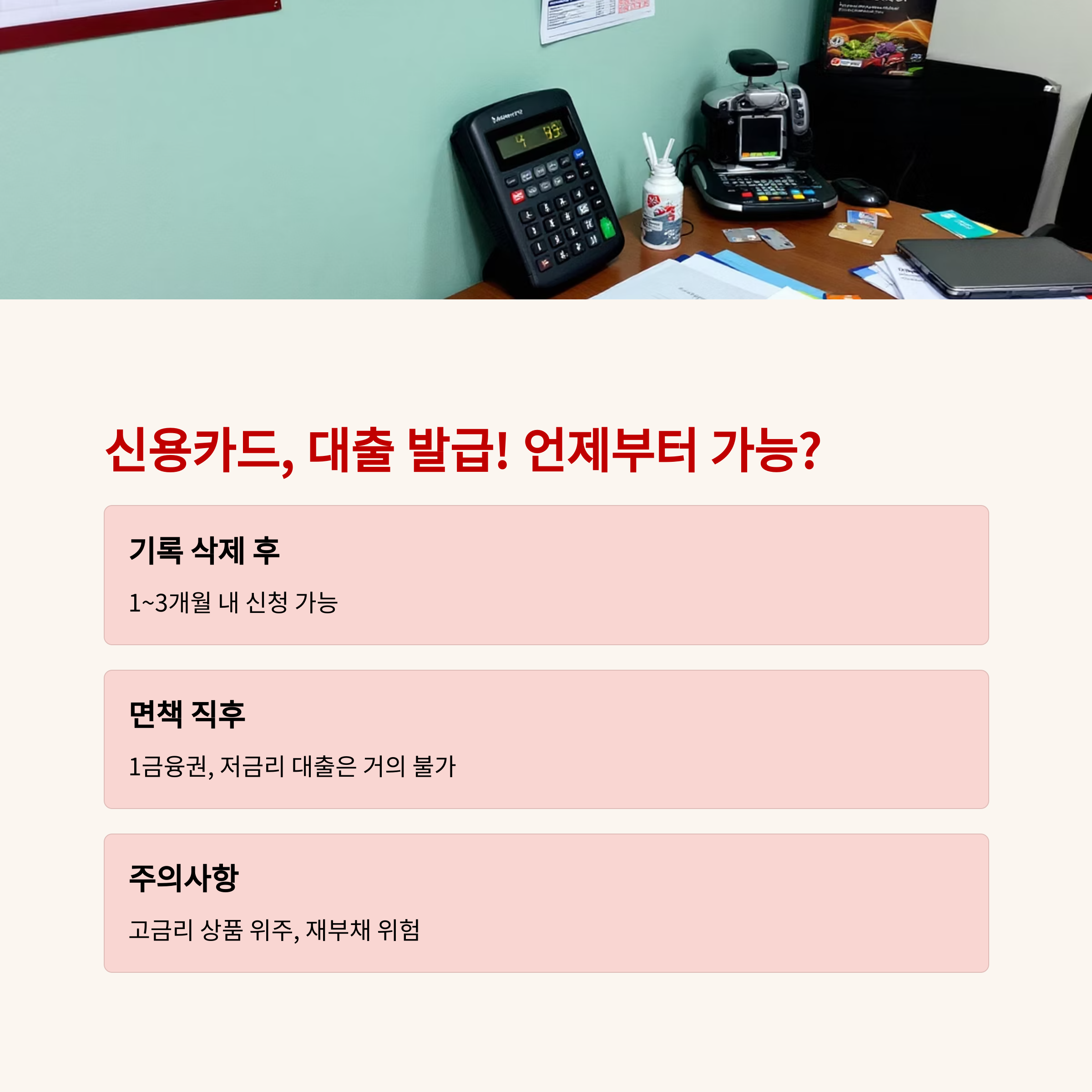A1: 면책 직후에는 신용카드 발급이 매우 어렵습니다. 신용정보원에 개인회생 기록이 남아있고, 신용점수가 낮기 때문입니다.