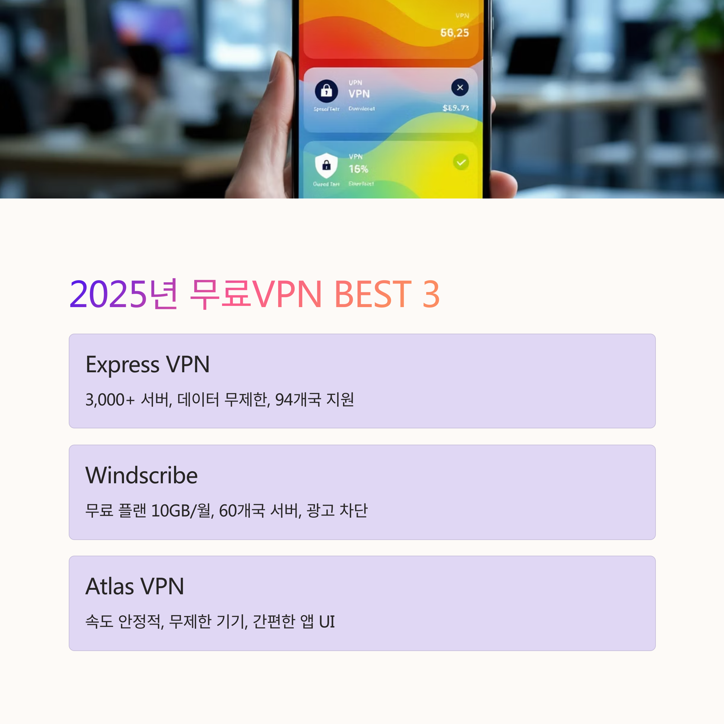 무료VPN 추천을 찾고 계신가요? 2025년 최신 정보를 바탕으로 안전하고 빠른 무료VPN과 가성비 좋은 유료VPN 추천까지, 개인정보 보호와 스트리밍에 최적화된 VPN을 자세히 소개합니다. 지금 확인하고 최적의 선택을 해보세요! 😊