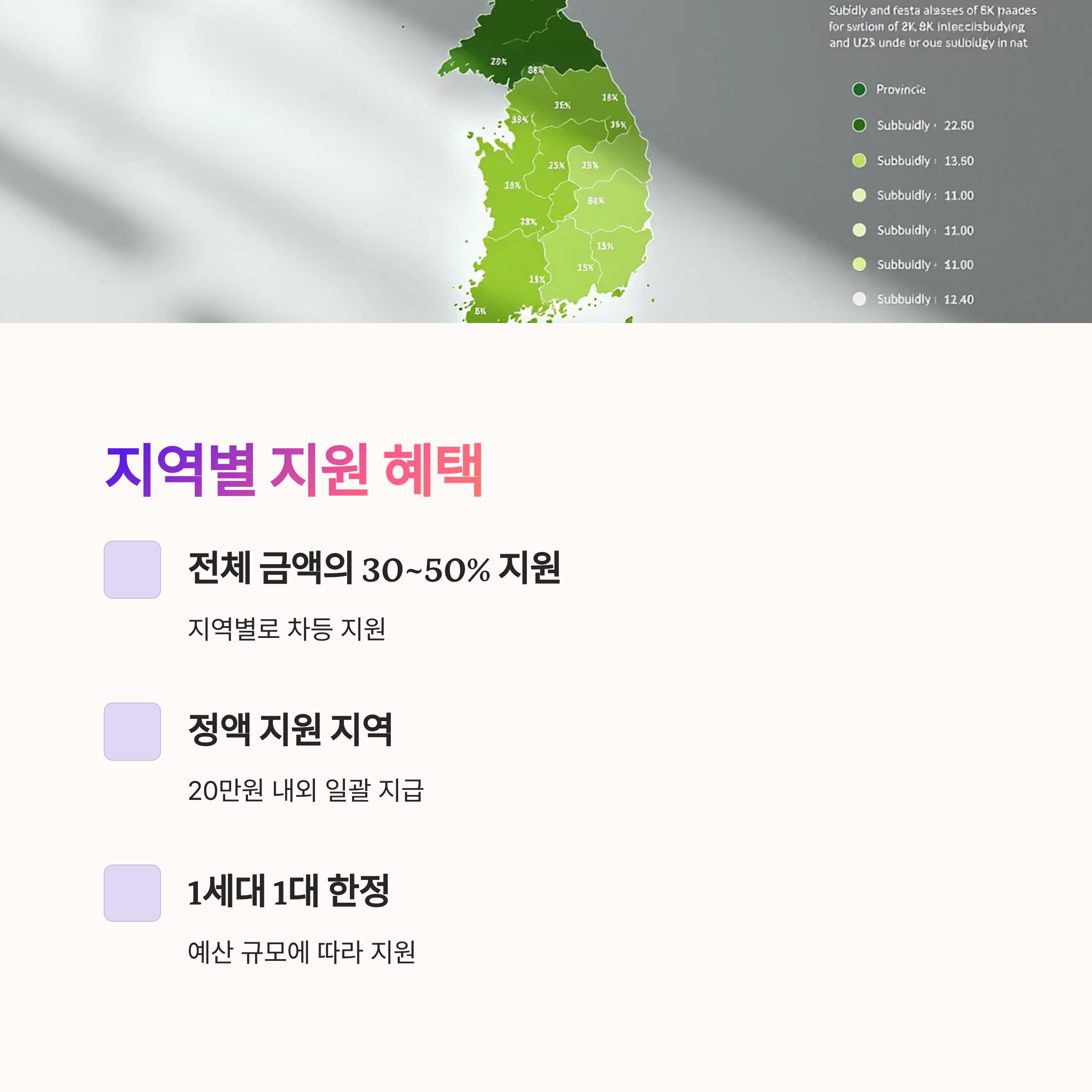 지역마다 지원 금액이 다르니, 예산이 넉넉한 곳은 조기 마감될 가능성이 높아요. 저는 작년에 신청을 미루다 예산이 소진돼 놓친 적이 있으니, 공고가 뜨면 바로 준비하세요!
