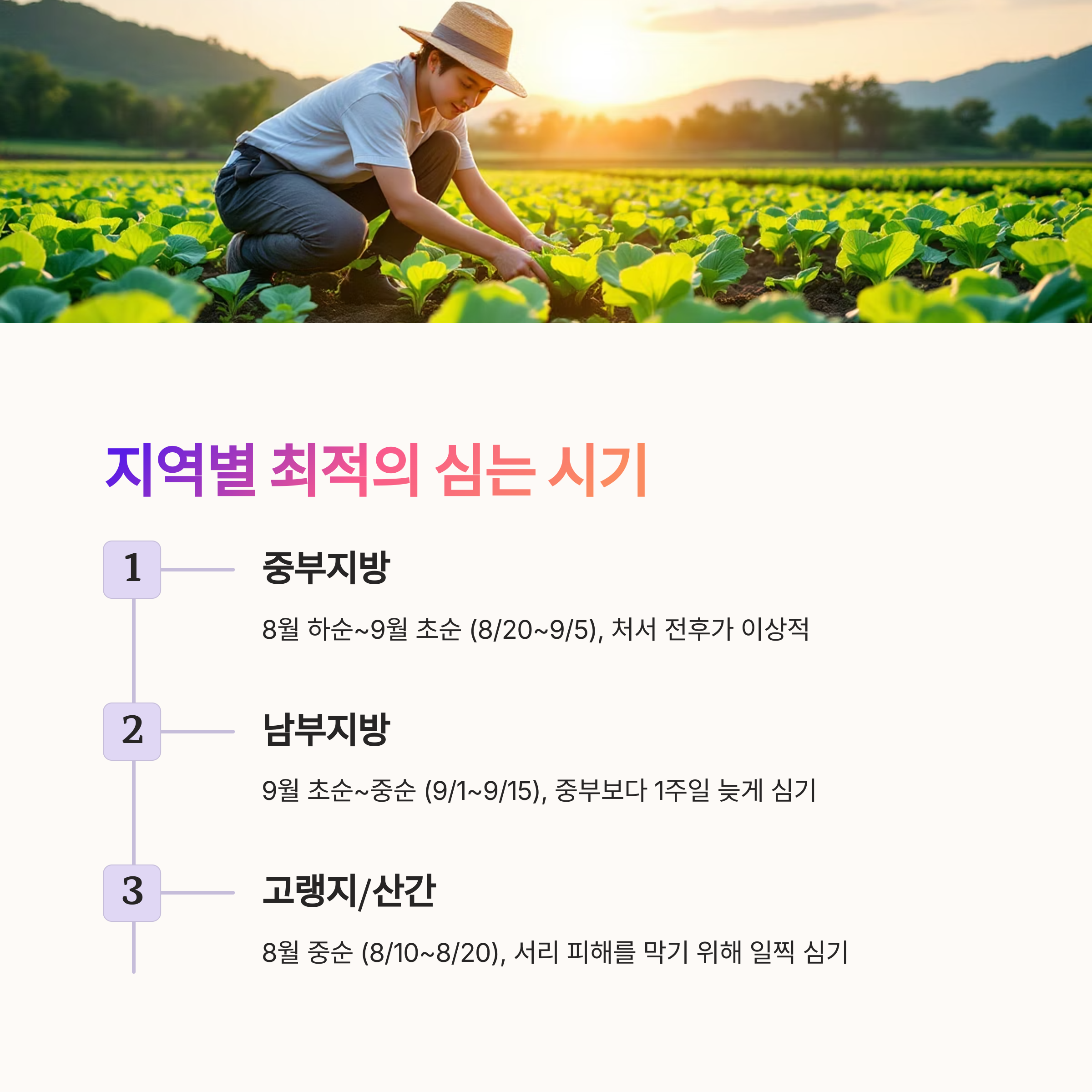 🗓️ 2단계: 가장 중요한 시기! 지역별 김장배추 모종 심는시기
