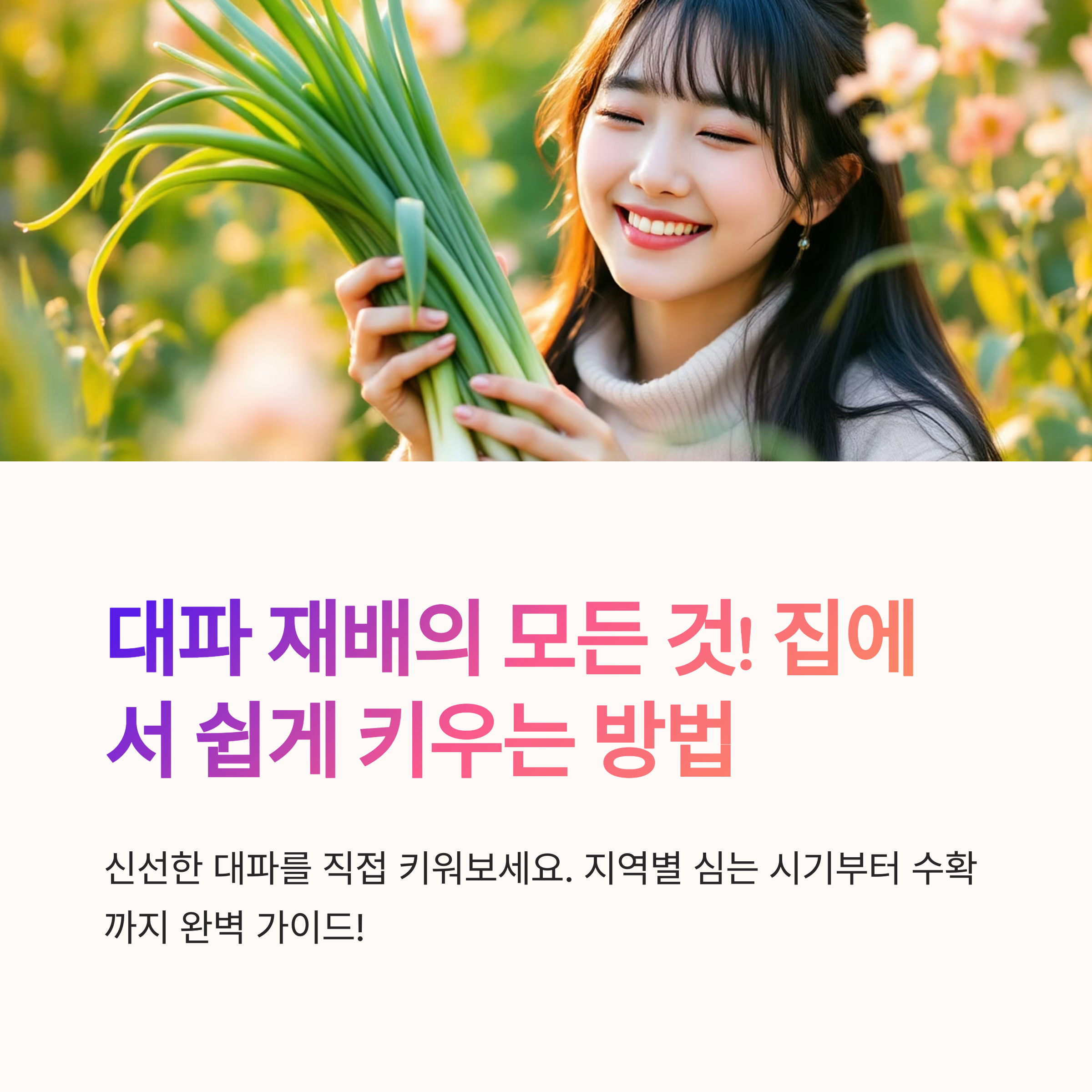 대파 재배는 처음엔 어렵게 느껴질 수 있지만, 이 가이드를 따라 대파 모종 심는 시기와 대파 재배방법을 꼼꼼히 실천하면 누구나 신선한 대파를 수확할 수 있어요.