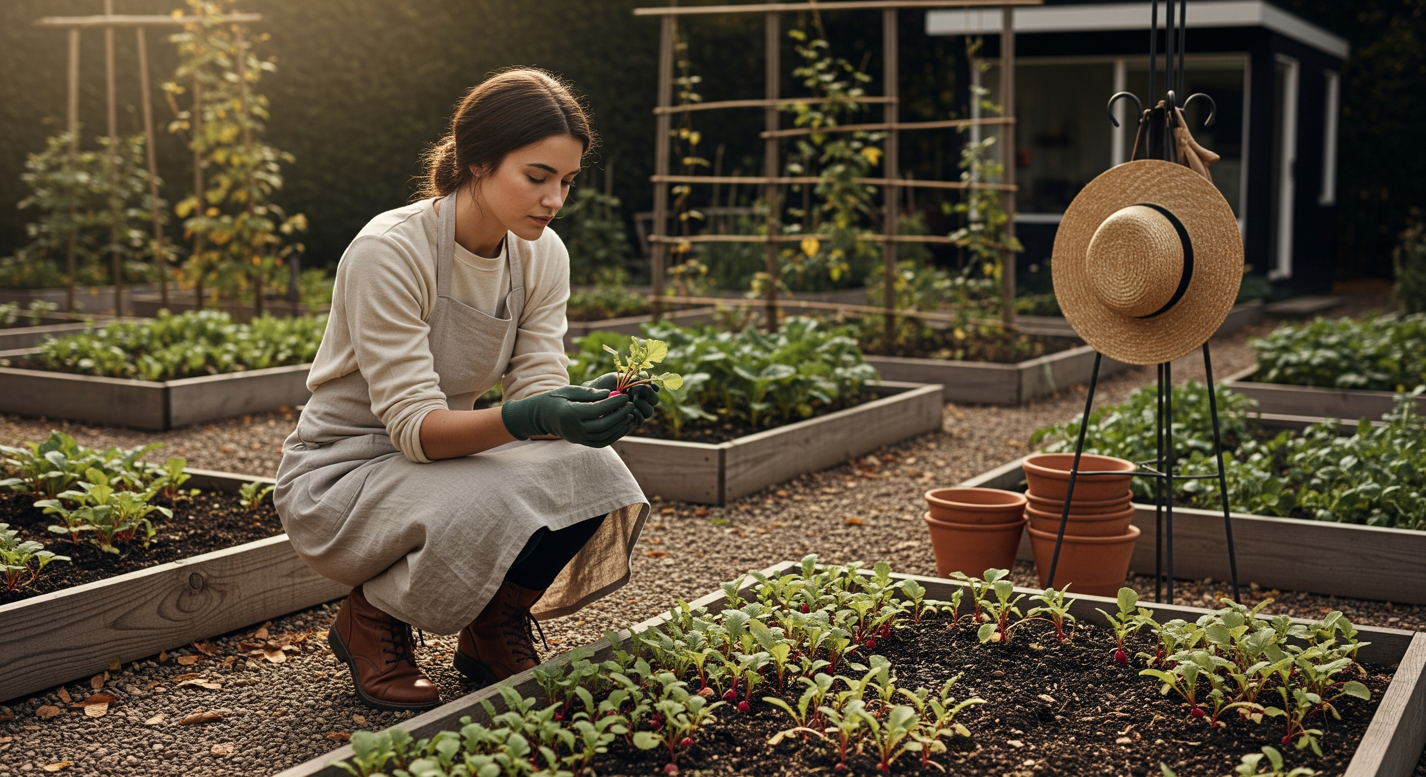 봄 재배는 두둑 높이를 5~10cm로 낮게, 가을 재배는 장마를 대비해 15cm 정도로 높게 만드세요. 두둑 폭은 120~150cm가 적당합니다. 이렇게 하면 뿌리가 곧게 자라고 물빠짐도 좋아집니다.