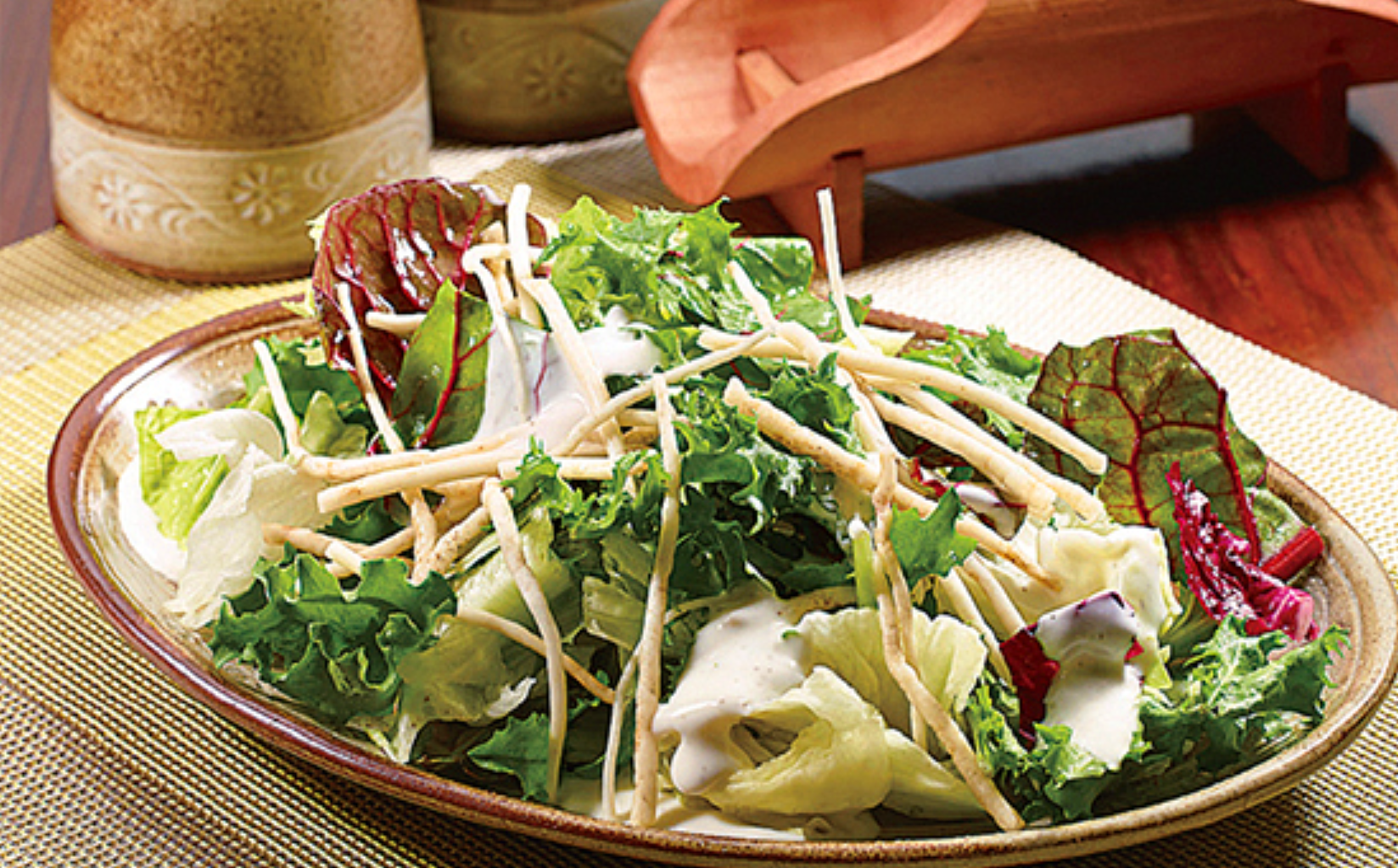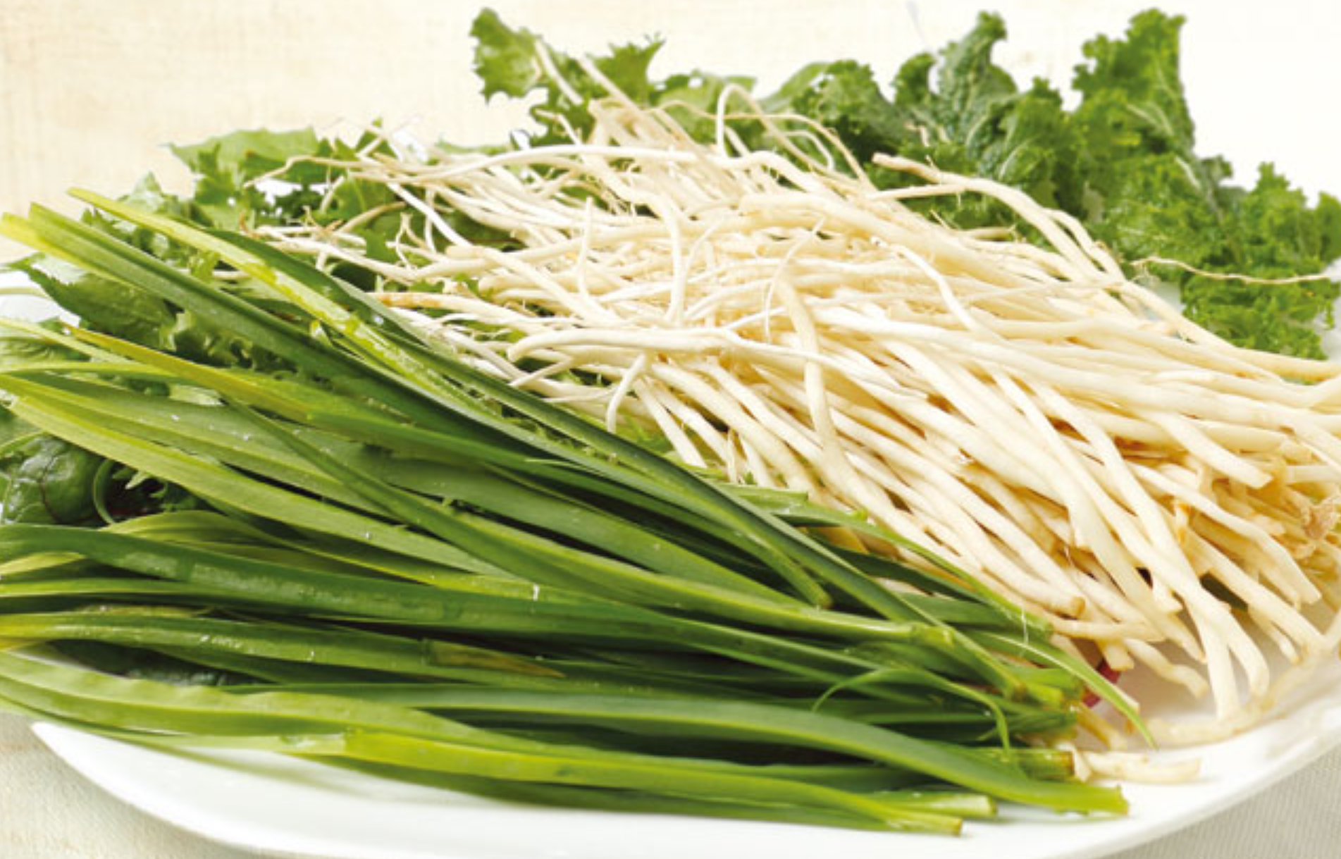 재료 : 삼채 뿌리 100g, 양상추 50g, 새싹 채소 10g