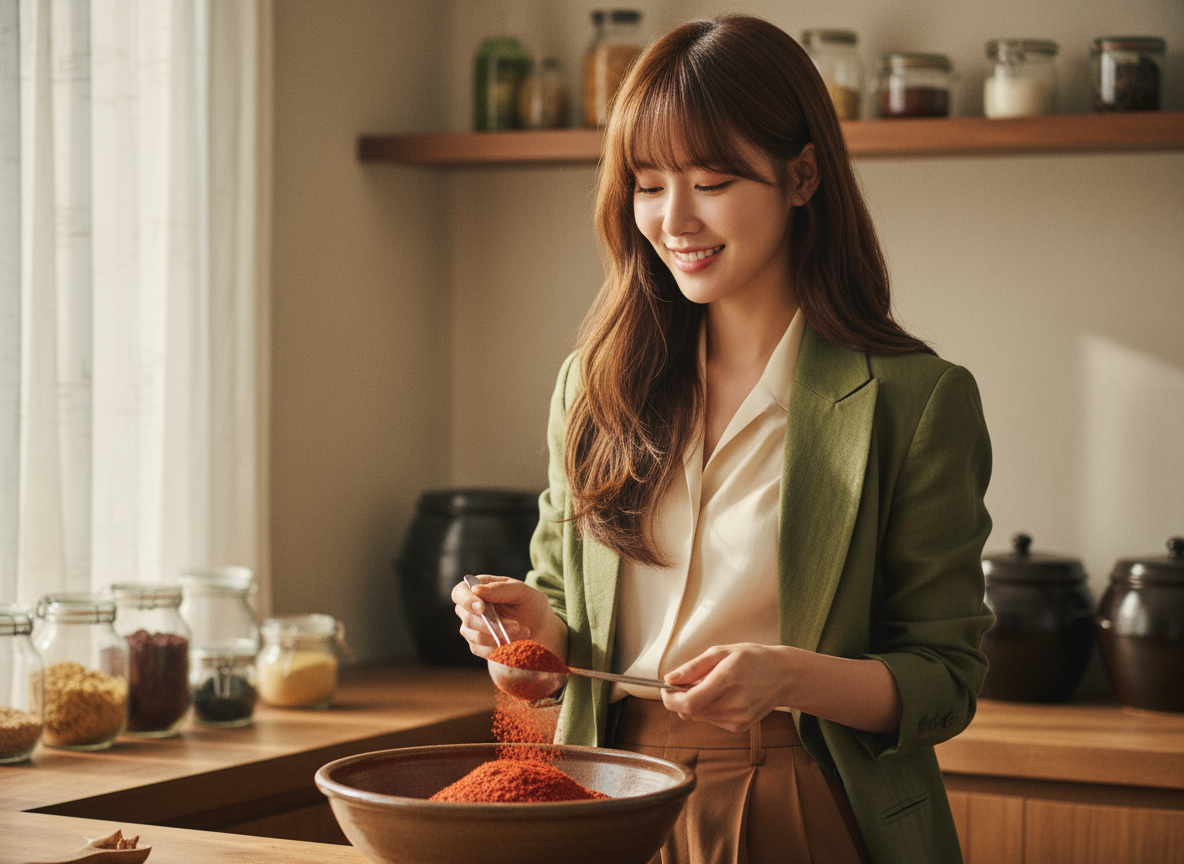 고춧가루는 배추 1포기당 150g 기준 절임배추 60kg이면 약 25포기 정도니까 고춧가루 3.6~4kg이 적당합니다. 매운 맛을 더 원하시면 3.8kg까지 늘려도 괜찮아요. 고운 고춧가루와 굵은 고춧가루를 7대3 비율로 섞으면 색깔과 맛이 더 풍부해집니다.
