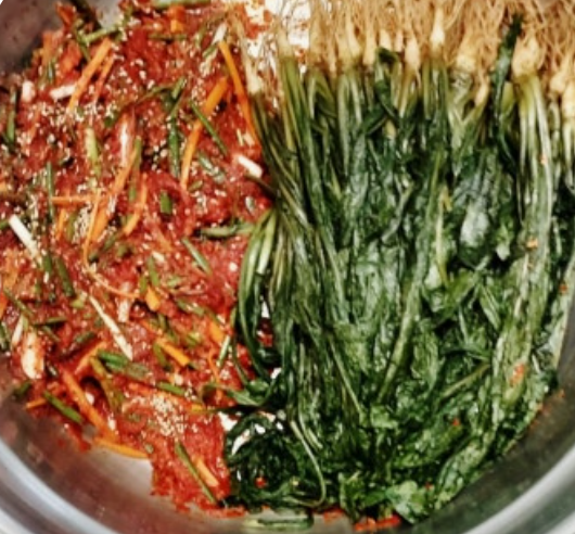 다음 단계의 고들빼기김치 담는법은 양념장을 만드는 과정입니다. 양념장의 맛이 곧 김치의 맛을 결정하기 때문에 신경 써서 만들어야 해요.