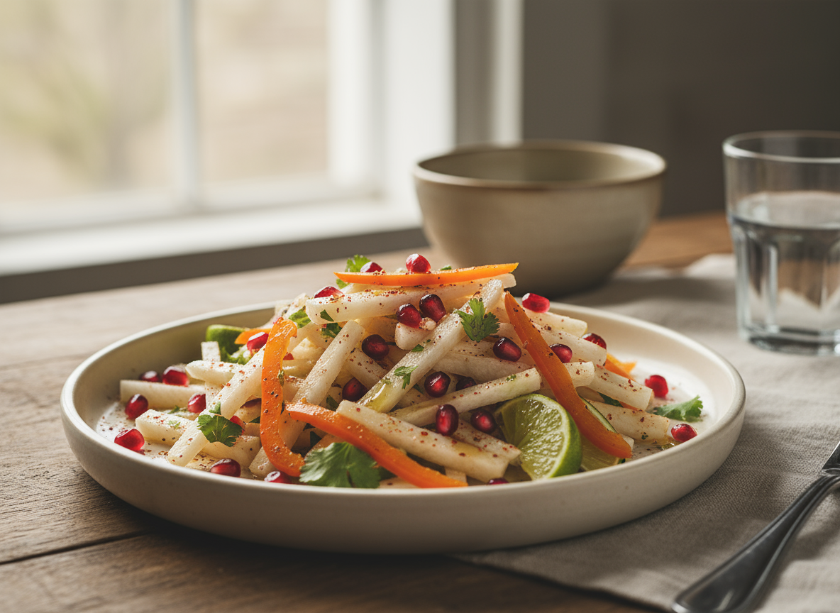 히카마 먹는법 중 가장 간단하면서도 영양소 손실이 없는 방법이 바로 생으로 먹는 거예요. 껍질을 벗긴 후 적당한 크기로 썰어서 그냥 먹어도 되고, 과일 샐러드나 채소 샐러드에 넣어도 훌륭합니다. 레몬즙, 올리브오일, 꿀을 섞은 드레싱과 함께 곁들이면 상큼한 맛이 배가되죠.